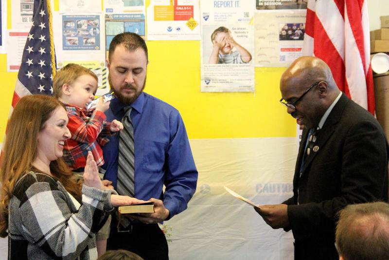 Longtime postal employee and Officer-In-Charge Shermeen Hill was sworn in as postmaster of the Sandwich Post Office in a small ceremony Friday afternoon, March 6, in the back of the post office.