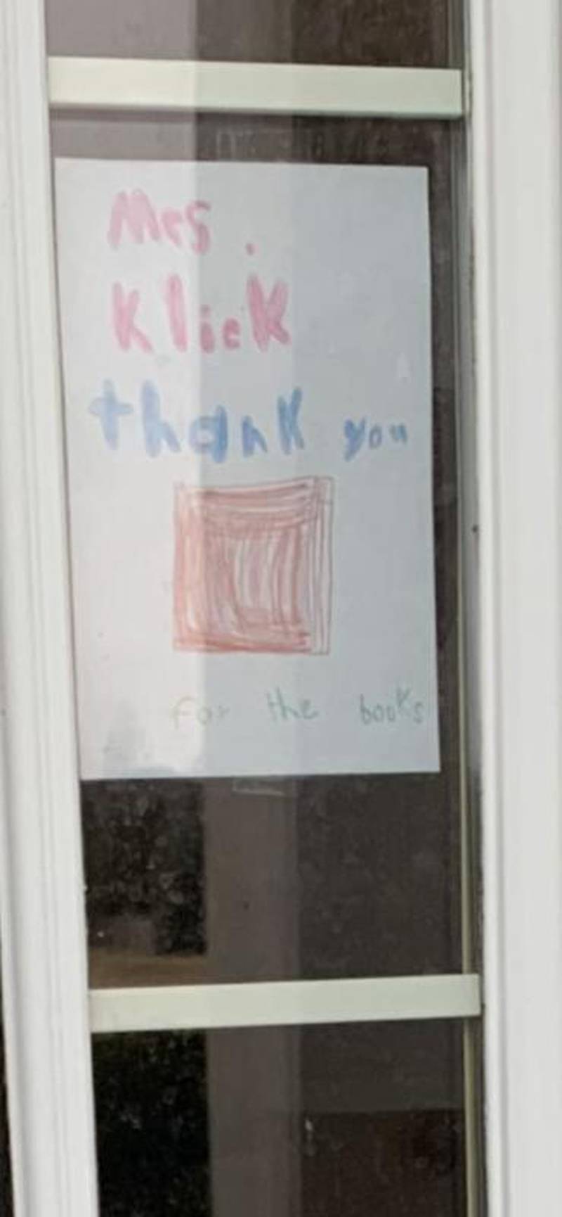"The answer was a resounding, BOOKS!," she said. That's why Klick drove to each of her students' homes, and delivered bags of books to them.
