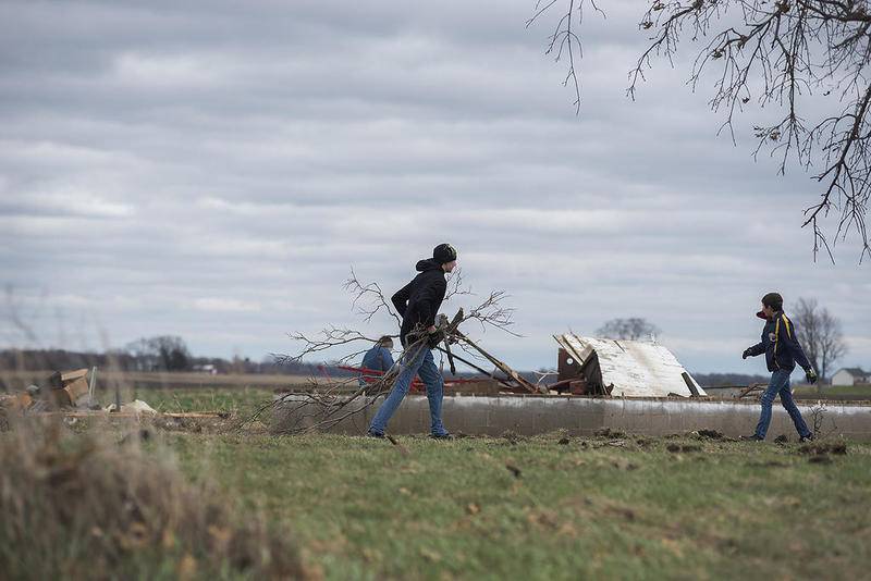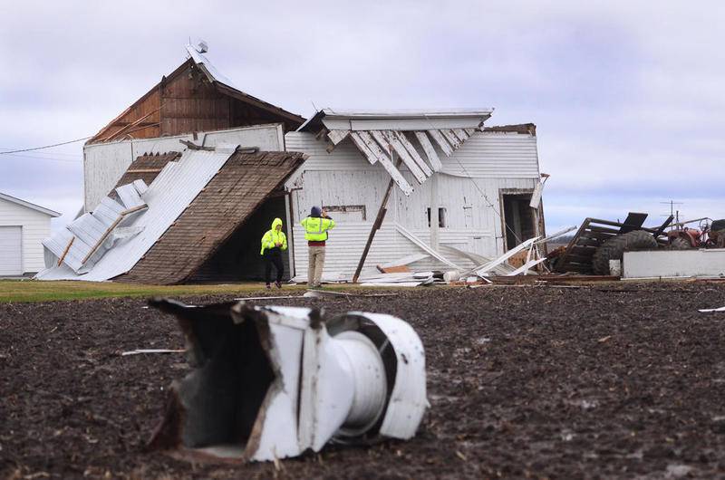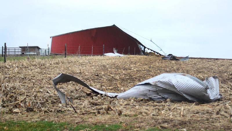 Winds did destroy three farm buildings in rural Prophetstown owed by Gail Goodell, on Lomax Road, along the Whiteside-Henry County border near Leon Corners.