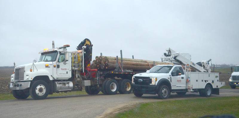 South of Weld Park Road and east of German Church, ComEd crews were busy replacing utility poles and wires along Limerick Road and Black Walnut Road.