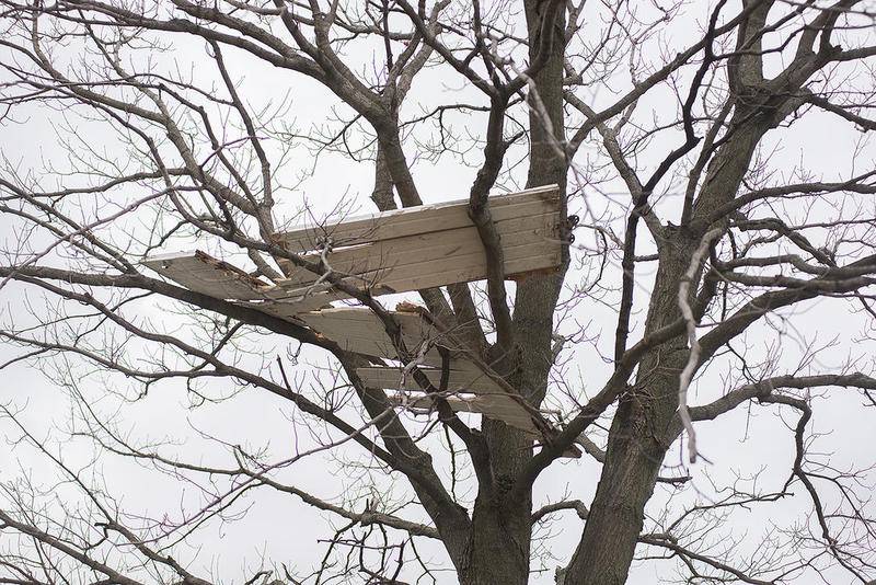 “I was in the hallway, scrunched down,” said Kunce whose home does not have a basement. “It took the big pine trees along the house and they fell across my driveway, and it tore the electrical service lines to my house. ComEd was here and pulled the trees off of my driveway, which was really nice.”
