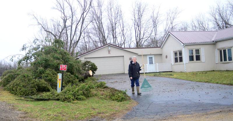 In her backyard, a large tree laid across her LP tank, which appeared to have been moved by the wind. “So, I have no heat,” Connie said this morning as helpers arrived to clear more trees.