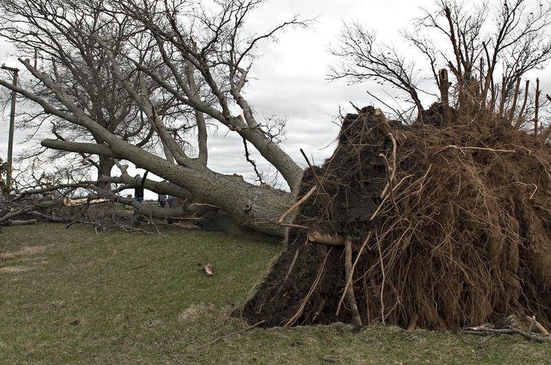 Northeast of German Church, mature trees were uprooted and another machine shed was damaged along Merrill Road.