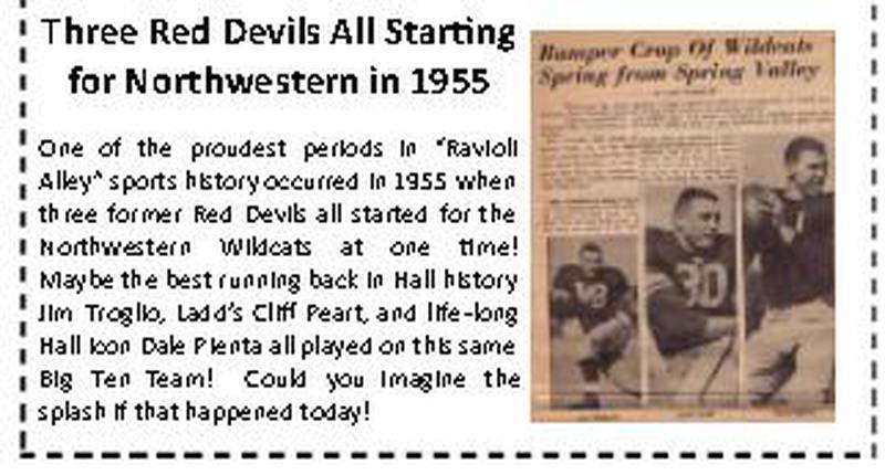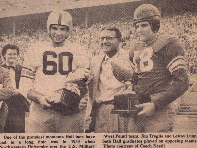 In 1955, some of the older Hall fans made arrangements to rent a six-car train to take fans to see Troglio and fellow Hall graduates Dale Pienta and Cliff Peart play for Northwestern University.