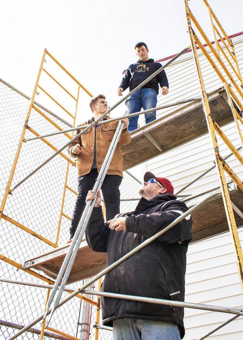 The process started just less than 2 years ago. Girton has been working on it since October. He estimates that it is 80%done and will be completed by June. Lately, siding and lockers are being added. The school’s maintenance crew will be hooking up electricity soon.