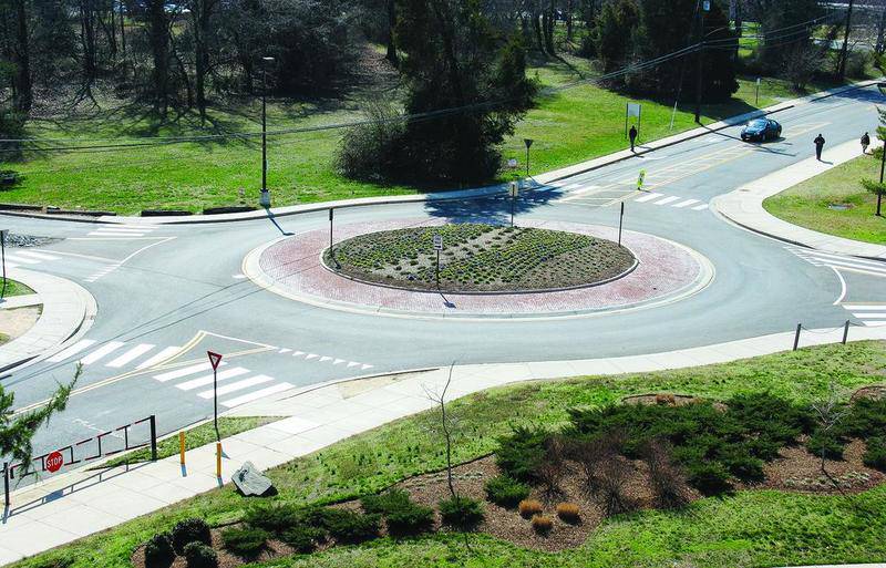The city is spending about $942,000 to build the roundabout to better accommodate Halo Branded Solutions, on the southeast corner of the intersection, and other growing companies in the Meadowlands Business Park, and make the intersection safer for motorists and pedestrians.