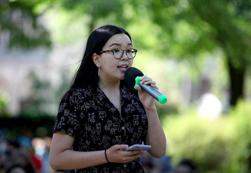 An Ha of Wheaton speaks during a gathering of young protesters at Adams Park in Wheaton for a Black Lives Matter rally and march on June 12.