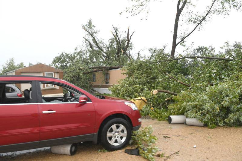 Trisheena Sturtz had come home to check on her cats and the storm hit five minutes later. Her friend Kurtis Jacobs directed her to get into the bathroom and he saw a tree come down by their trailer.