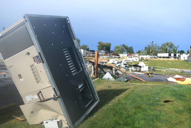 The Forreston Township building also sustained heavy damage and several empty semi-trailers were pushed into a corner lot with one being turned onto its side.