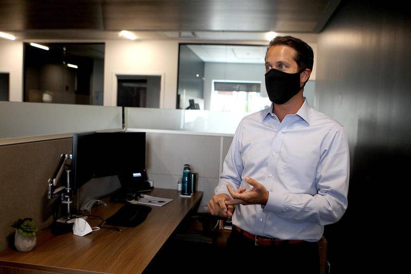 The 6,000-plus-square-foot inside – which had been leased to a business that sold antiques and jewelry – now hosts a long hallway with offices on either side, conference rooms and an employee break room.