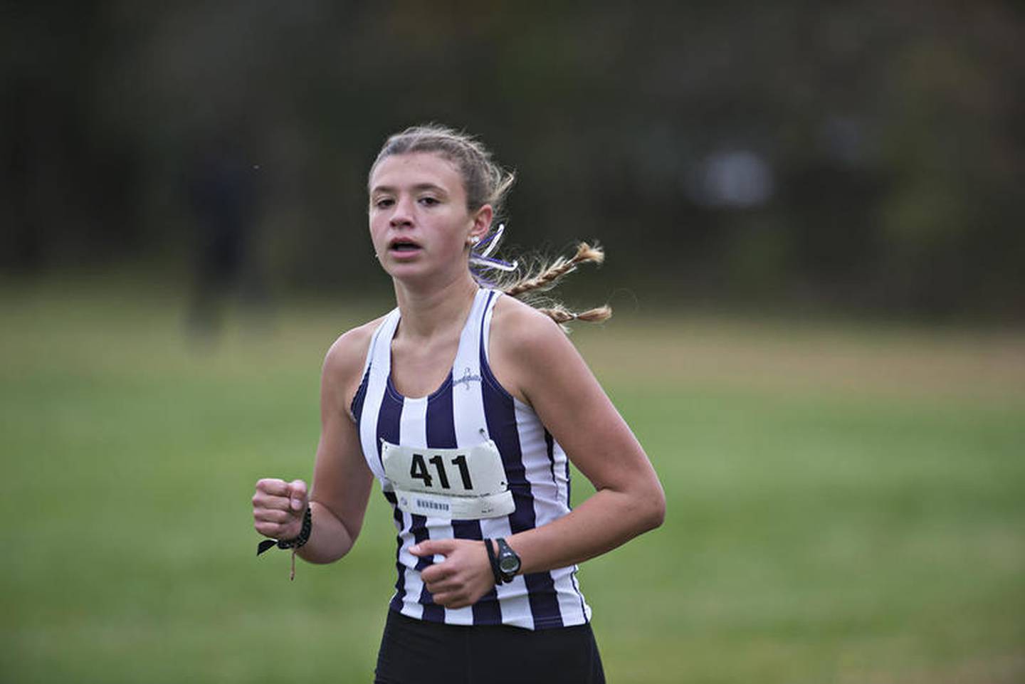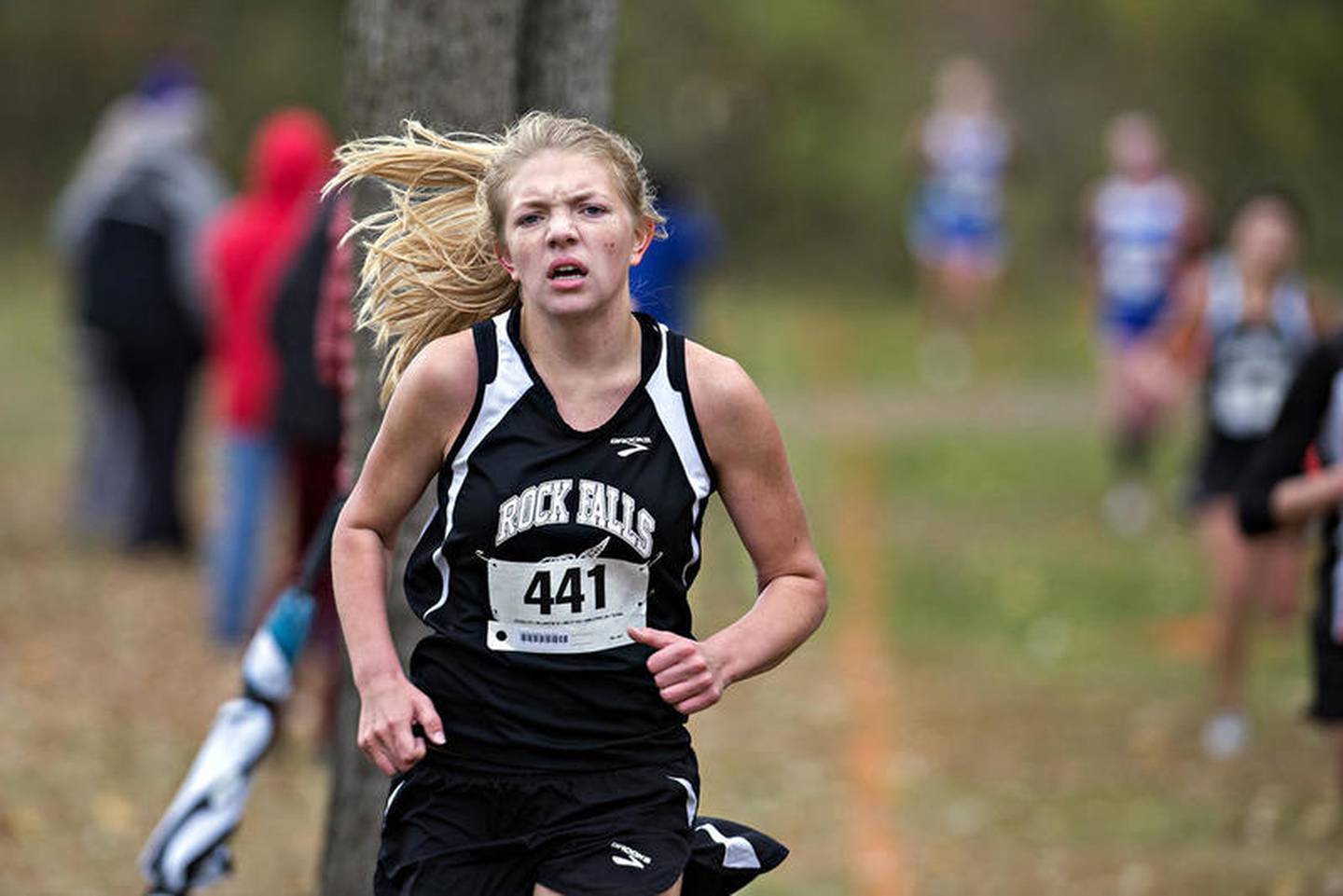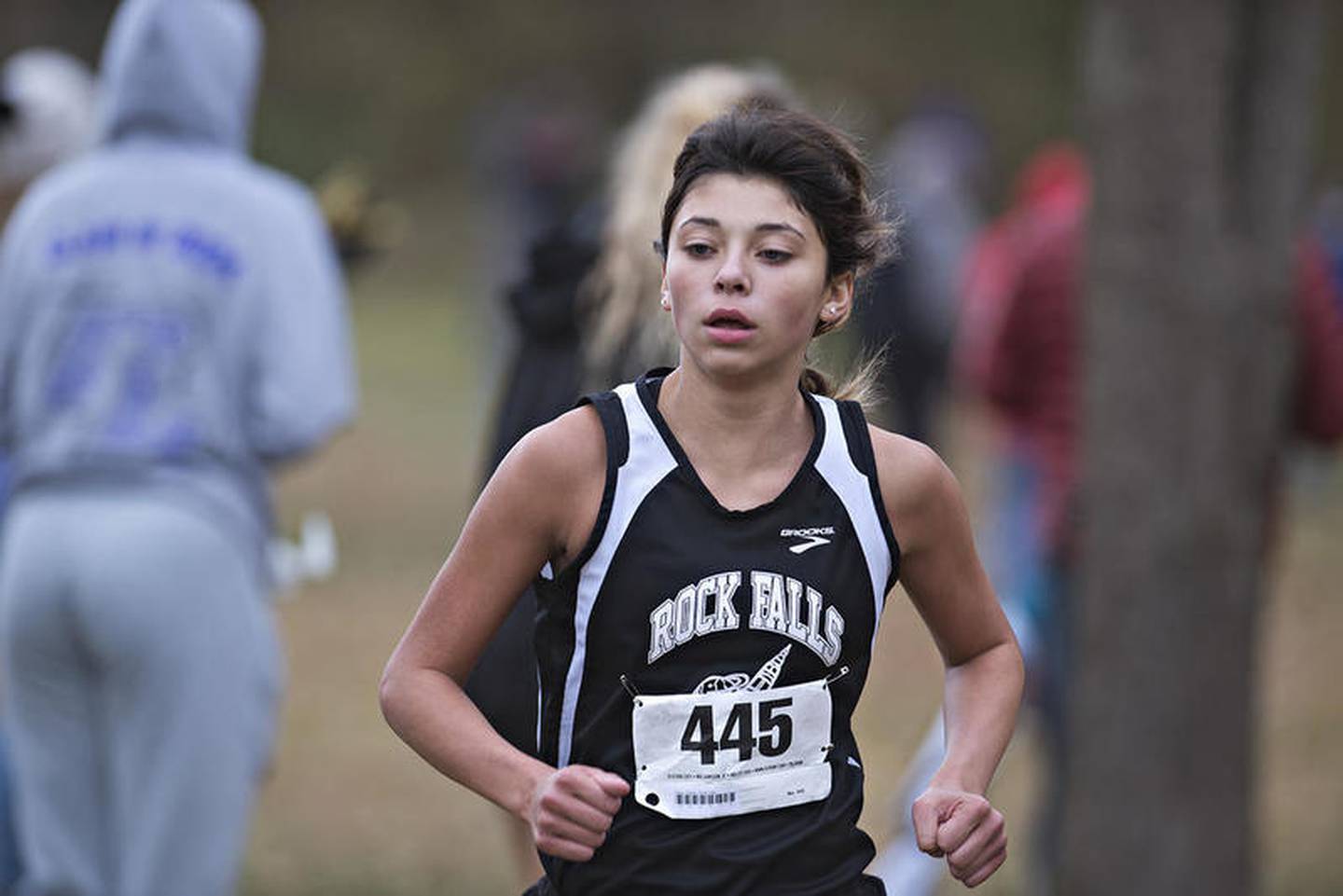 Rock Falls' Gracie Rippy competes in wave three of the Big Northern Cross Country meet in Kingston. (Alex T)