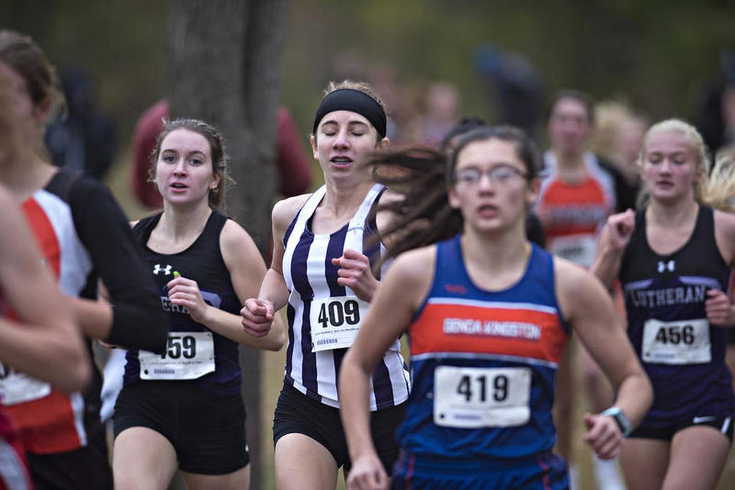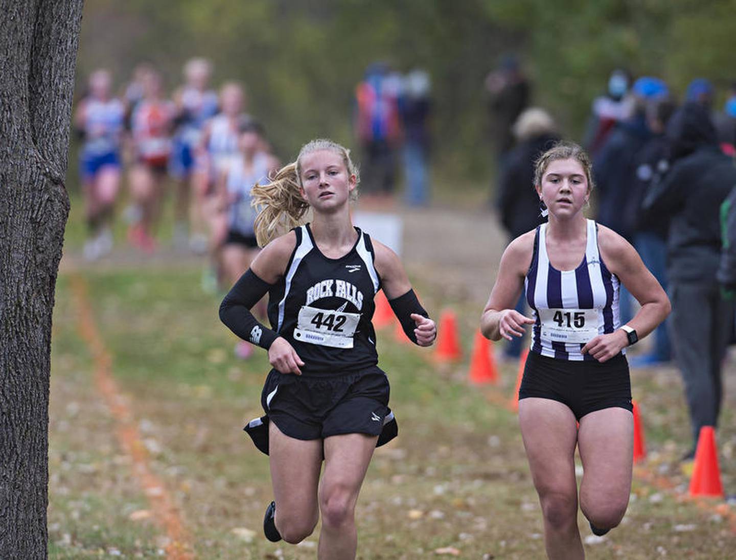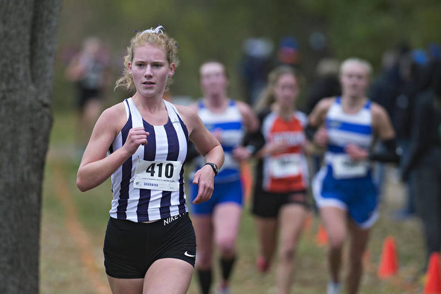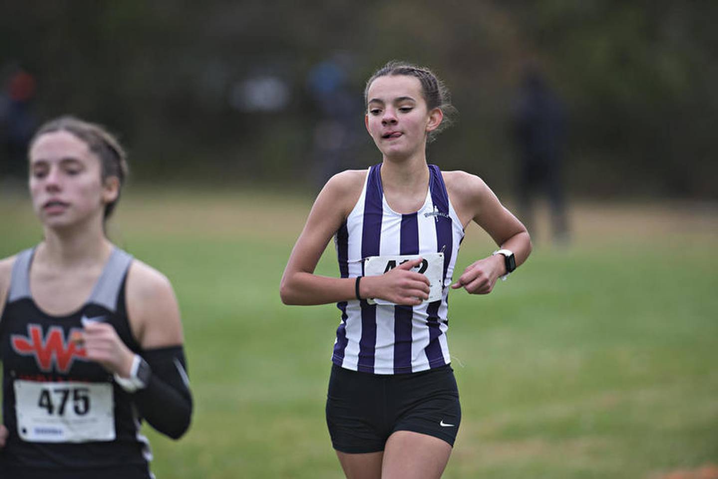 Rock Falls' Gracie Rippy competes in wave three of the Big Northern Cross Country meet in Kingston. (Alex T)