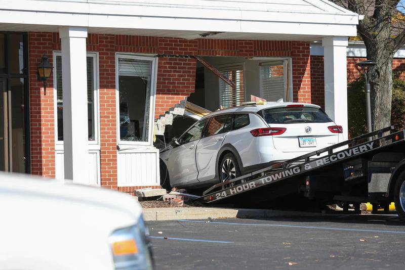 No injuries were reported after a vehicle drove into the BMO Harris Bank in Fox River Grove on Saturday morning.