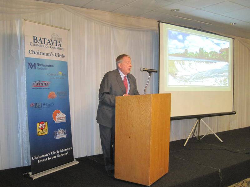 The mayor laced his speech with Batavia history, showing photographs taken decades ago followed by pictures of the same site today.