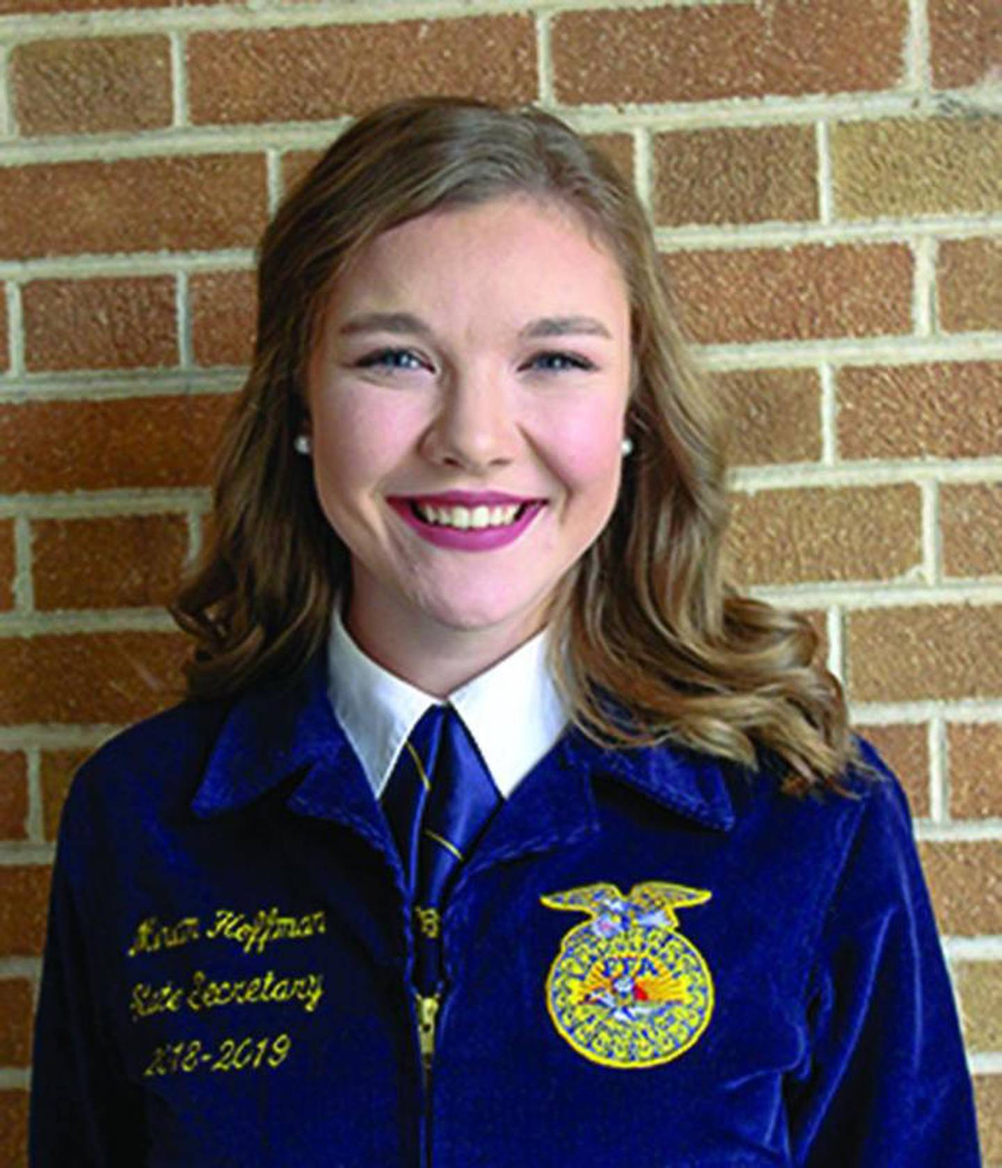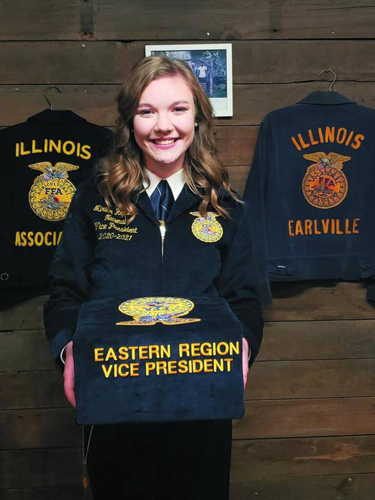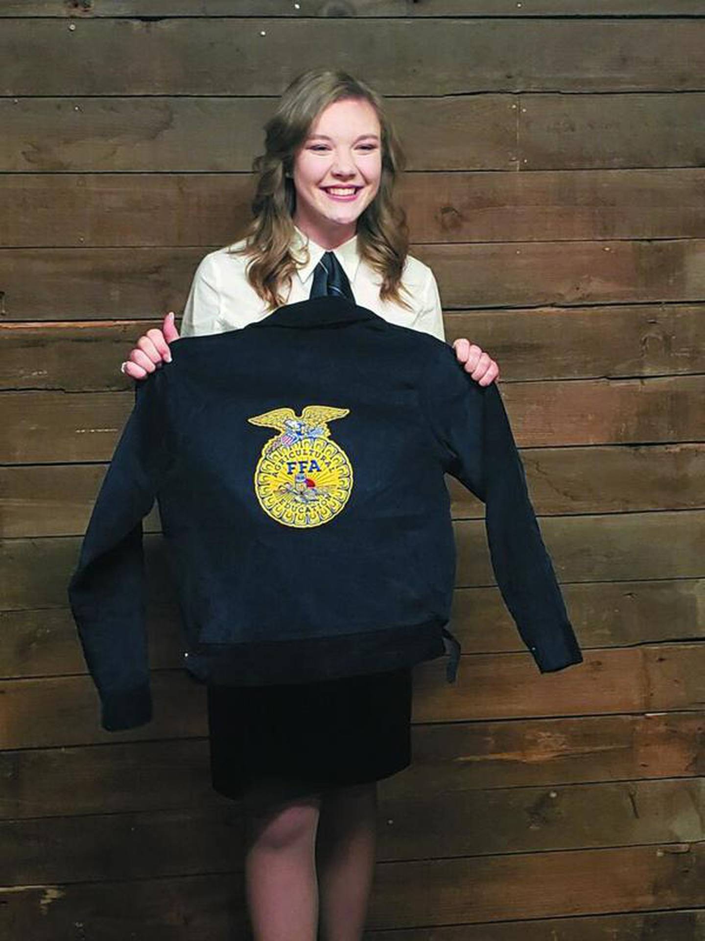 Miriam Hoffman shows her new FFA jacket that she will be wearing during the upcoming year as the Eastern Region Vice President of the National FFA Organization.