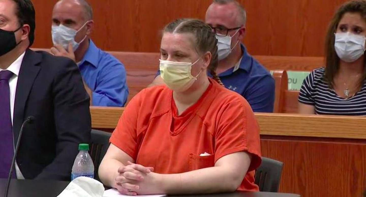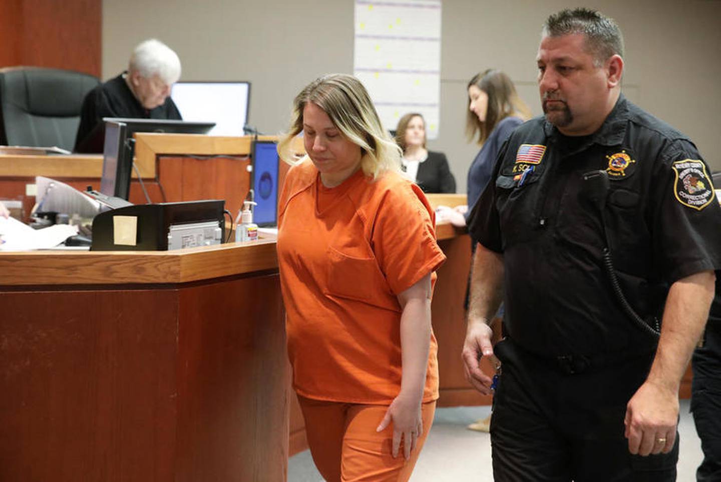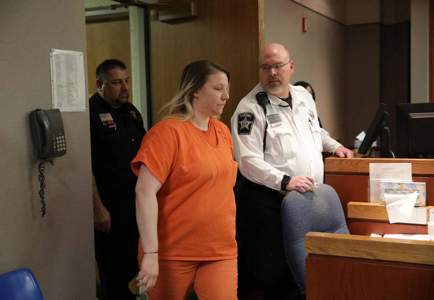 JoAnn Cunningham enters courtroom 302 Feb. 27 for a status hearing with McHenry County Judge Robert Wilbrandt at the McHenry County Courthouse in Woodstock. In December, she plead guilty to killing her 5-year-old son, AJ Freund. (Stacey Wescott)