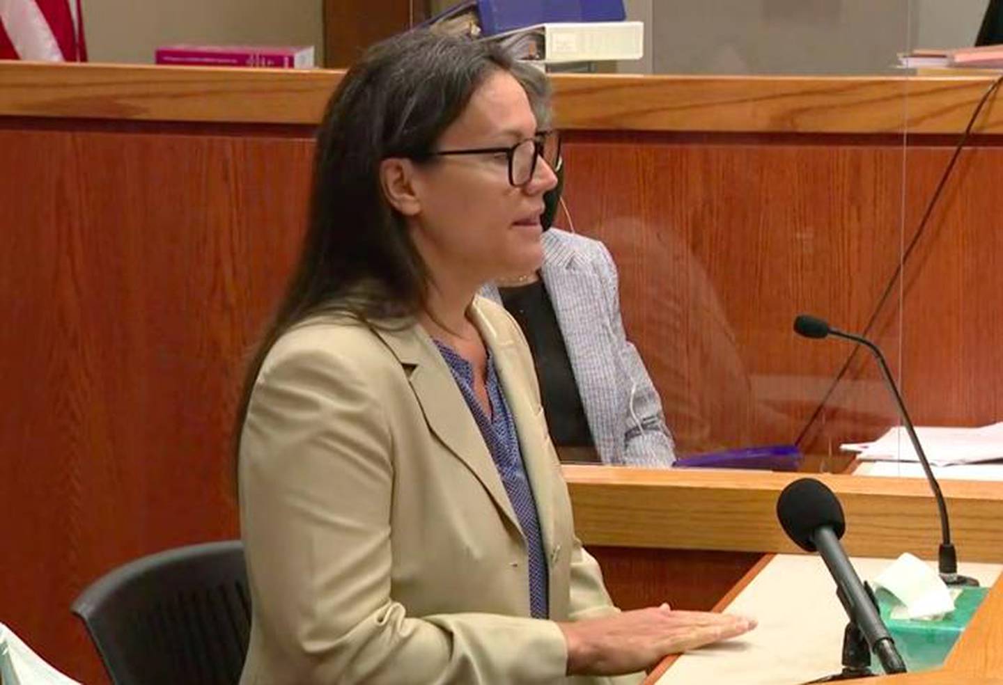 JoAnn Cunningham sits at a desk with her representatives in the courtroom on Thursday morning. (Courtesy of)