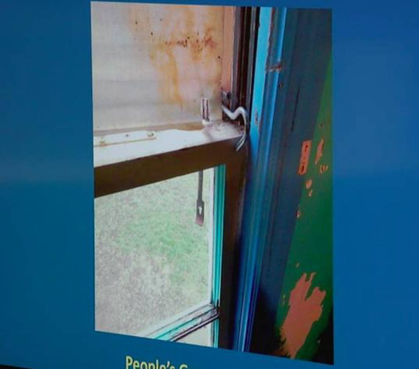 Photo of a lock on AJ Freund's bedroom window taken on April 18, 2018, at AJ Freund's Dole Avenue home.