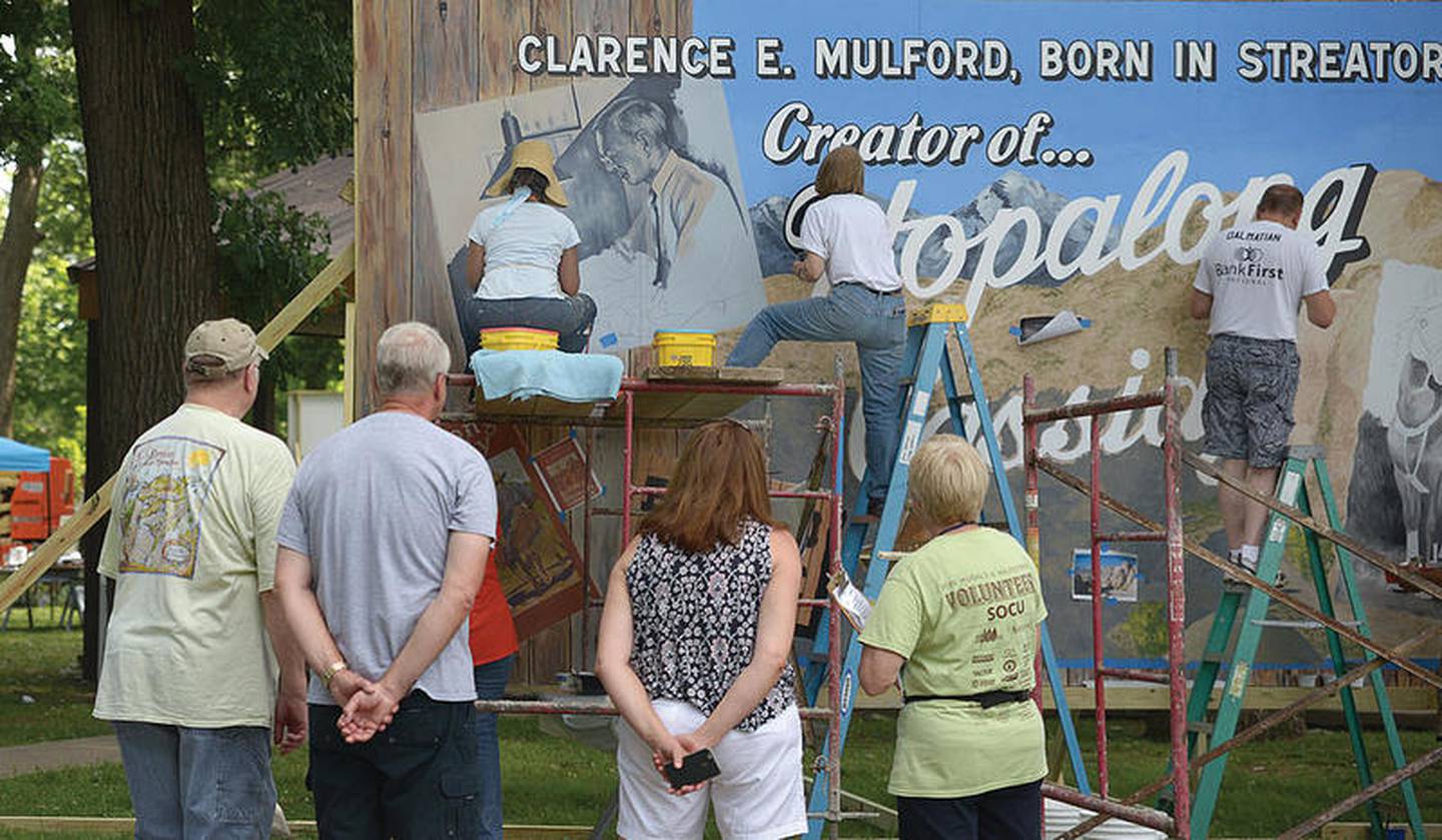 Many wandered throughout City Park watching the Walldogs finish up their murals, including the Hopalong Cassidy mural, in summer 2018. The Hopalong Cassiday mural now stands on a billboard in the 200 block of West Main Street. (The Times)