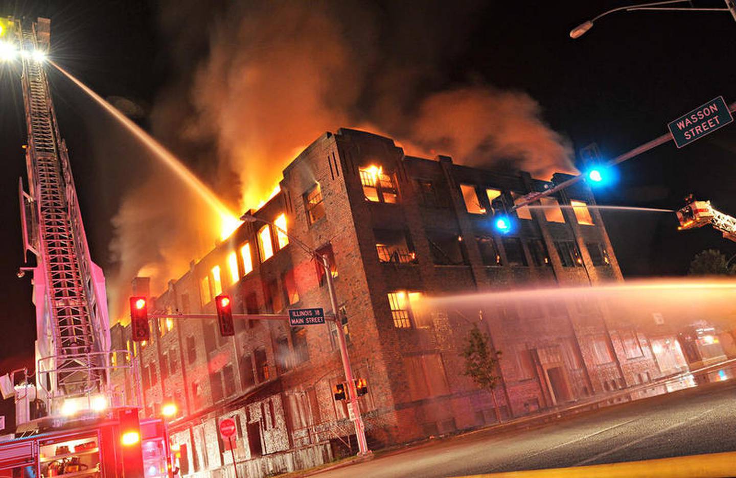 The four-story Lipton Tea building burned down Aug. 19, 2012, in downtown Streator. (The Times)