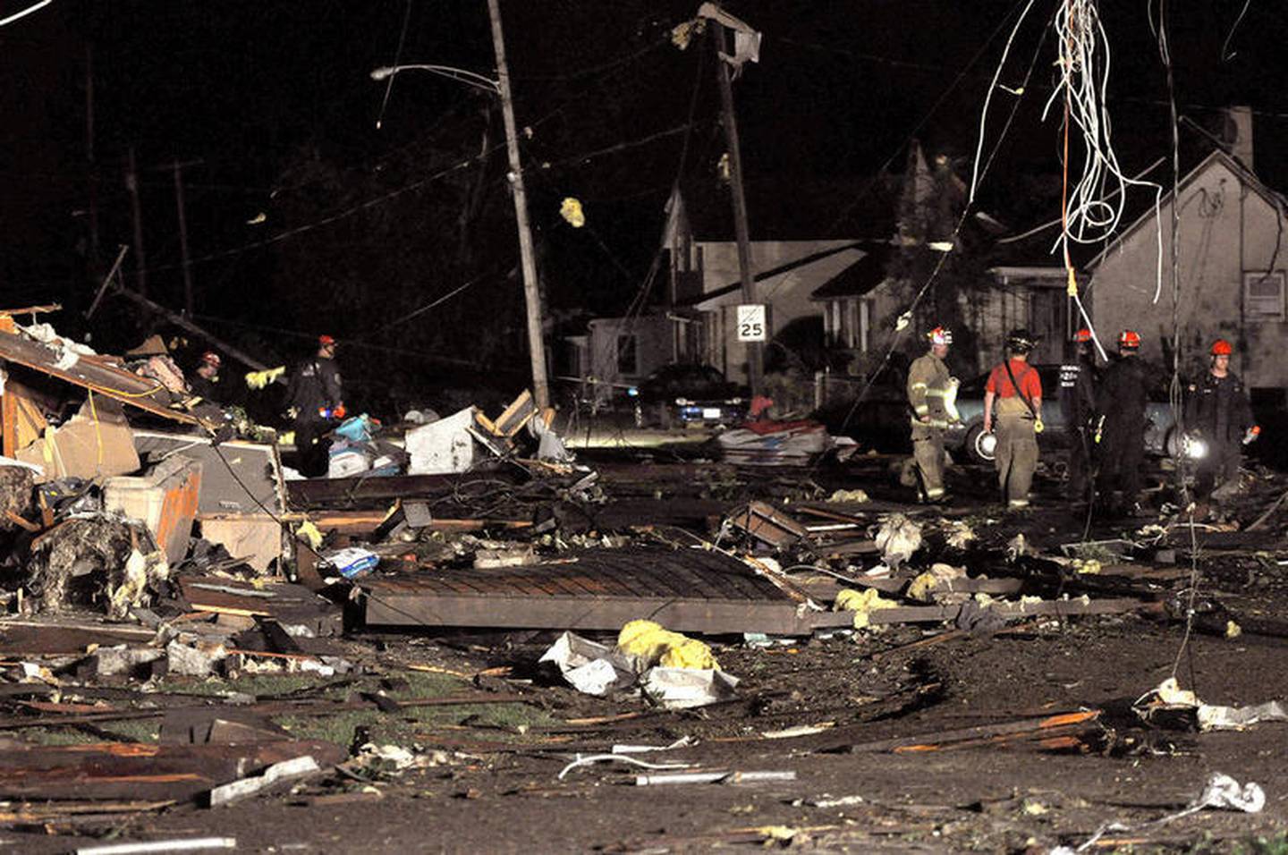Fire and rescue teams work through the debris on Hall Street after the Streator tornado in June 2010. (The Times)