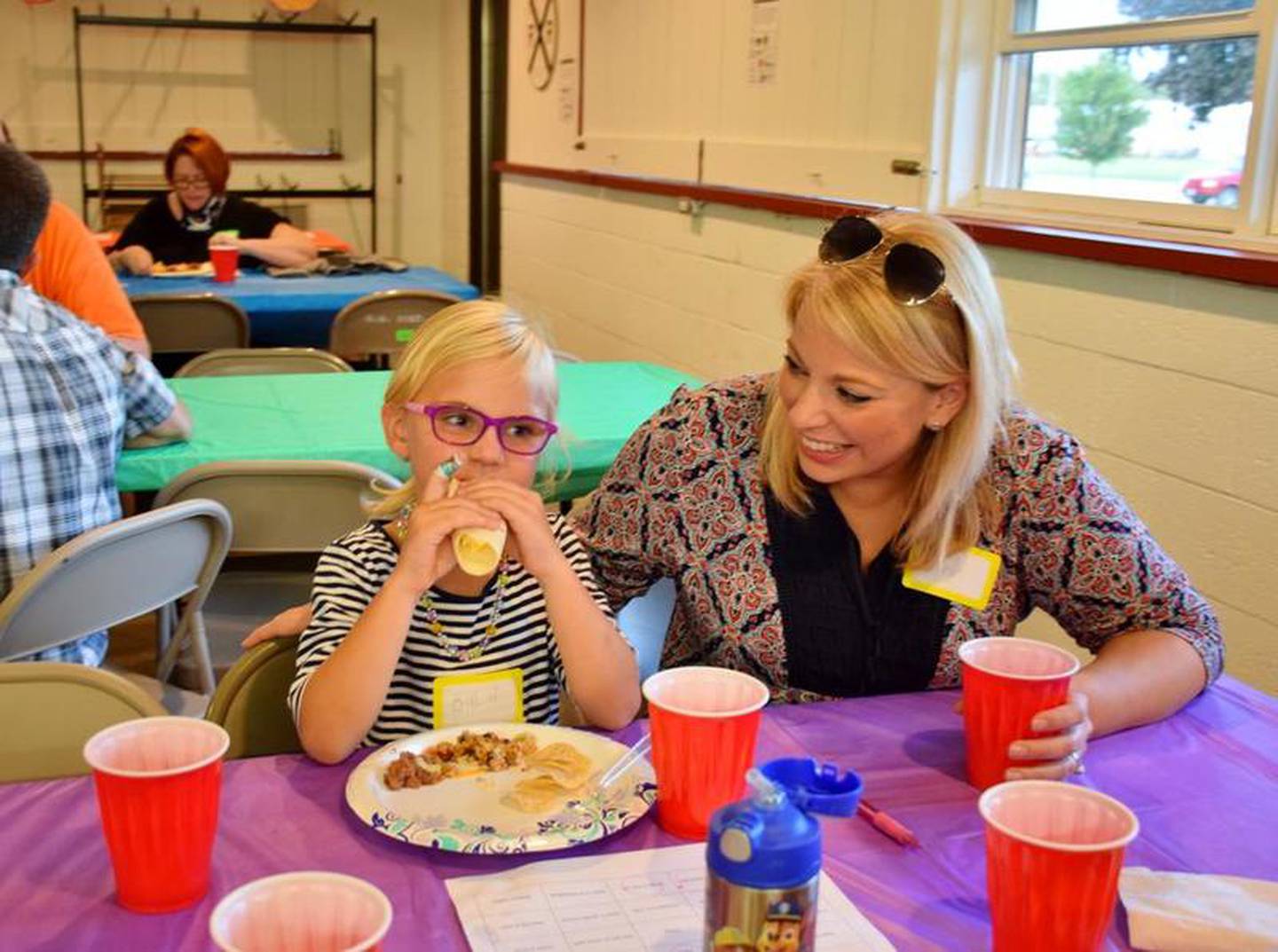 Lynn Byington and her daughter Blair Byington, 5, ate tacos during the free community dinner on Wednesday, Sept. 25, at Lions Park in Waterman. The event's goal was to empower families to build community through their own dinner tables. (Katrina J)