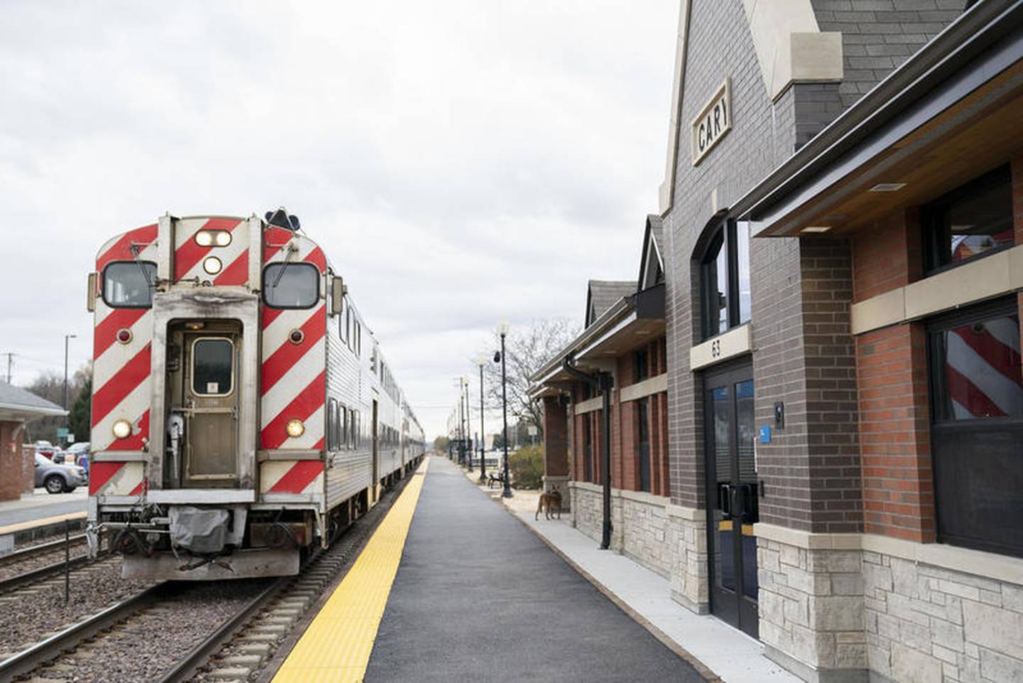 A Chicago-bound Metra train pulls into the new Cary Metra Station after a dedication ceremony for the station on Wednesday, Nov. 6, 2019. (Ryan Rayburn)