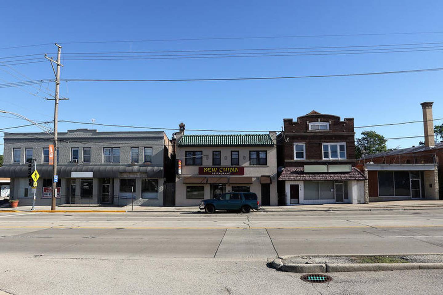 Vacant businesses sit on both sides of the New China restaurant on Route 14 in Fox River Grove. The village is considering using eminent domain to acquire the properties. (Matthew Apgar)