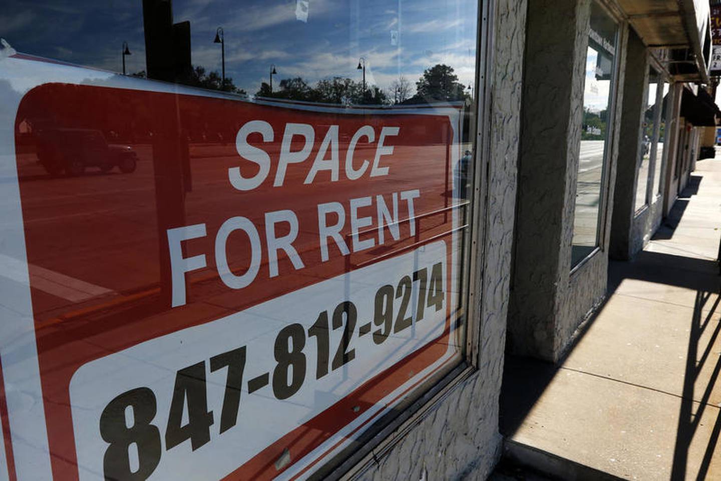 Rental signs sit in window fronts of vacant businesses along Route 14 in Fox River Grove. (Matthew Apgar)