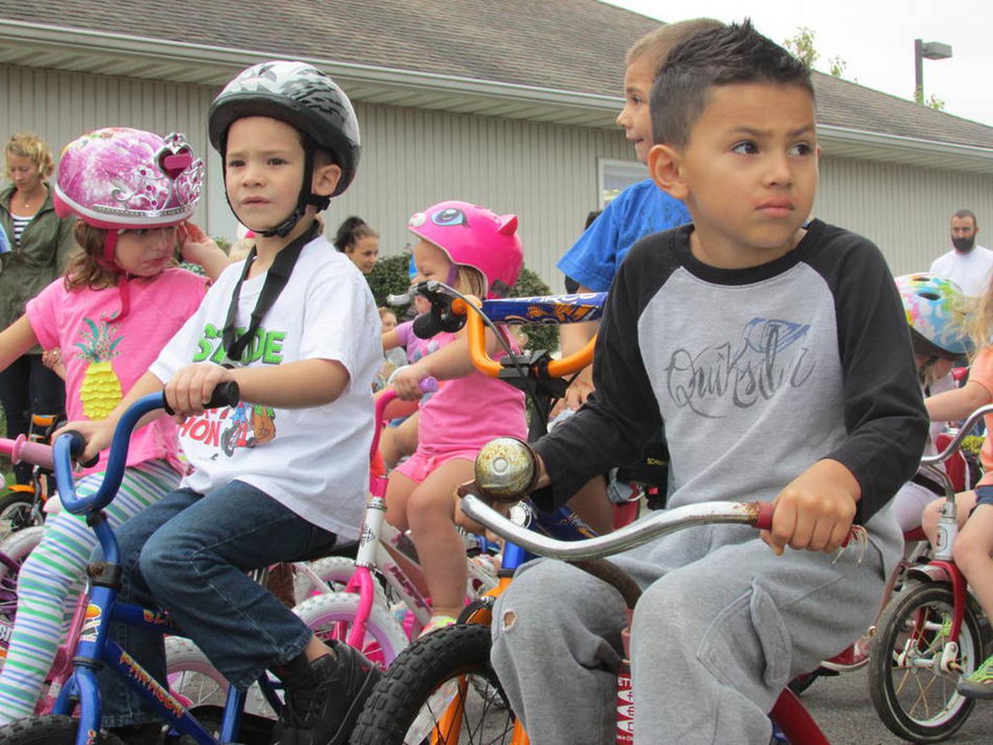 Children at the Walnut Street Daycare in Genoa wait for their teacher, Sarah Sundquist, to let them begin the riding through the third annual Trike-A-Thon on Friday, Sept. 23. Sundquist said children raised a combined $4,296 with the help of their families to donate to St. Jude Children's Research Hospital. (STEPHANIE MARKHAM)