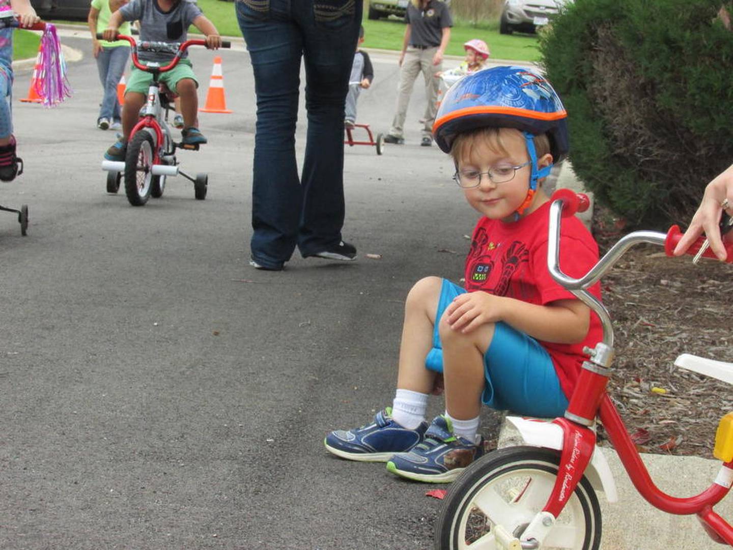 Joshua Mensching, 4, takes a break from riding his tricycle during the third annual Trike-A-Thon Friday, Sept. 23 at Walnut Street Daycare in Genoa. (STEPHANIE MARKHAM)
