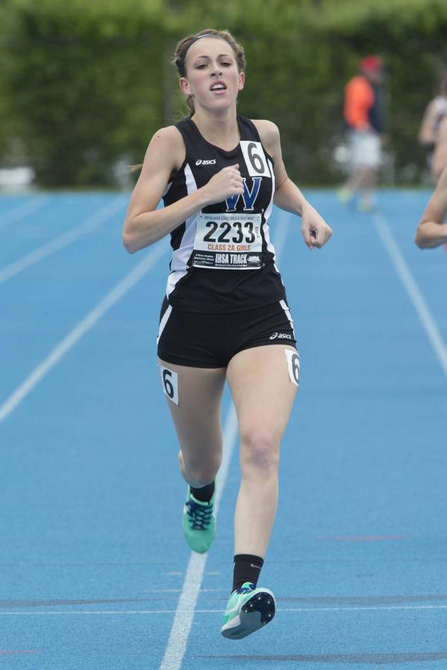 Woodstock's Grace Beattie competes in the Class 2A 800 meters preliminary competition Friday at the state meet in Charleston. She qualified for the final. (Chris Johns)