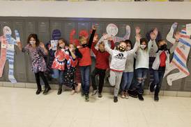Susan Berry’s second grade art classes at Bureau Valley North Elementary studied the art of Keith Haring and made self portraits in his style. They decorated them in a stars and stripes motif for Veterans Day.