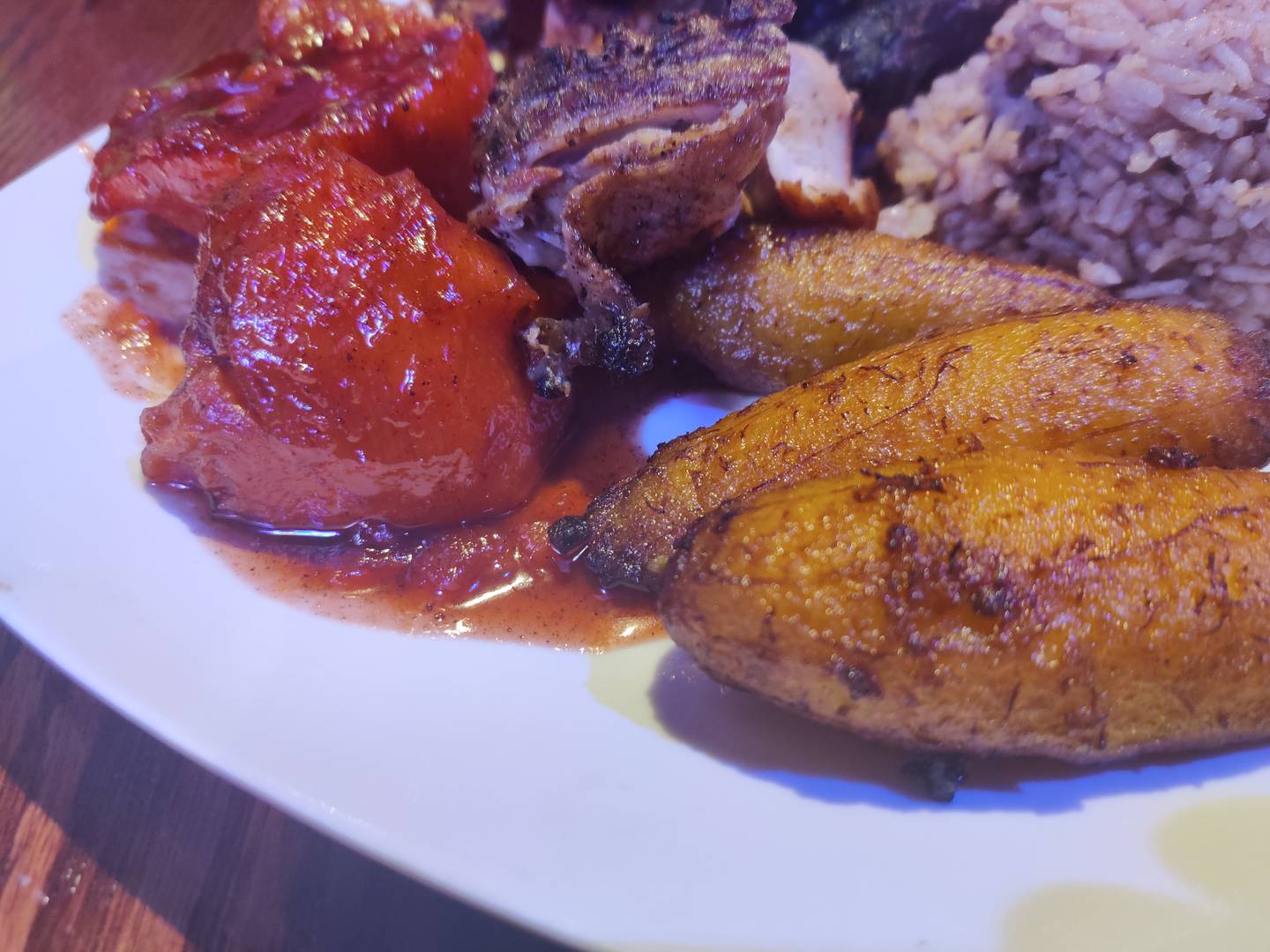 The food was almost universally delicious, a double bonus since Caribbean restaurants are rare in rural Illinois, and it’s a style not exactly easy to replicate at home. The oxtail dinner was a winner all the way around, starting with the surprisingly meaty main dish. These oxtails were not just hearty, but very flavorful, and complemented by a good gravy.
