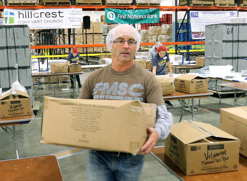 Suter: The meal packing events are Friday, Nov. 12, Saturday, Nov. 13, and Sunday, Nov. 14. There are a variety of two-hour shifts throughout the day. We will have specific COVID protocols. Anyone with symptoms will be turned away, masks are required, and volunteers must register in groups of eight to 10 people they know and are comfortable with. The groups then travel throughout the event together, socially distanced. Each small group is isolated from other groups, so you pack with people you know, people who are inside your circle of family and friends.