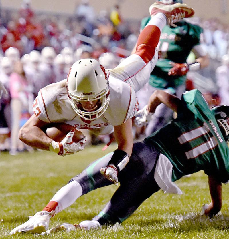 The Bill Novak-led Pirates pushed out to a two-score lead after the first quarter on the way to a 31-9 triumph at L-P Stadium in the season opener Sept. 15. Ottawa QB Jack Meckenstock scored a pair sneaks, halfback Keith Severson scored on a 63-yard run and a 31-yard interception return, and Fritz Ieuter added a 7-yard TD run. L-P’s Gene Bassetti rushed for 102 on 14 carries and the Cavs’ lone TD on an 8-yard run.