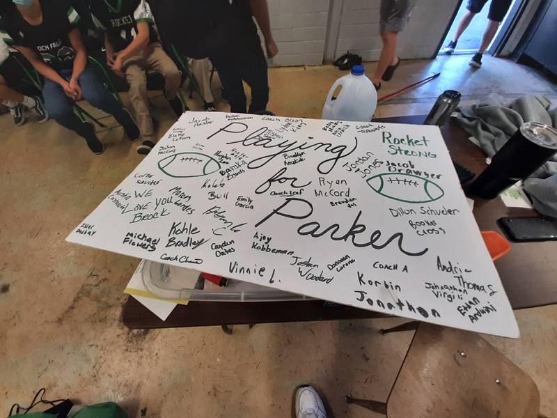 Instead, the Rockets gathered in their locker room at Hinders Field to sign cards and a poster to offer condolences for their lost teammate, senior Brock Parker, who died last Friday. His visitation was Wednesday evening.