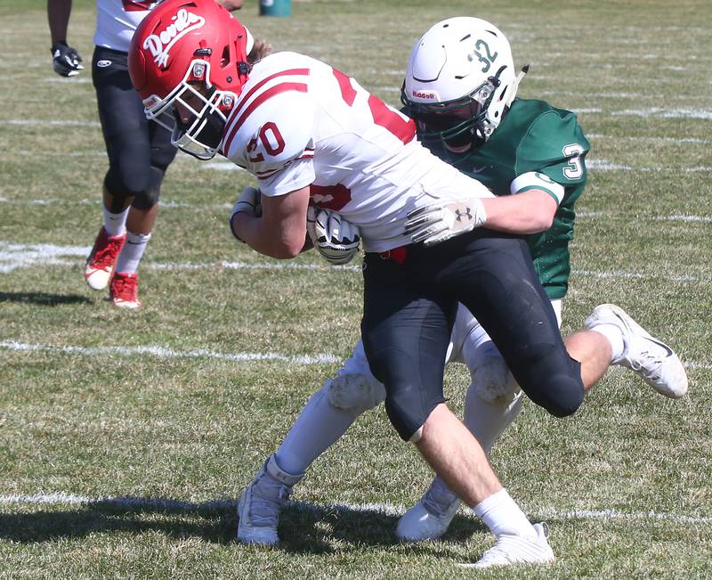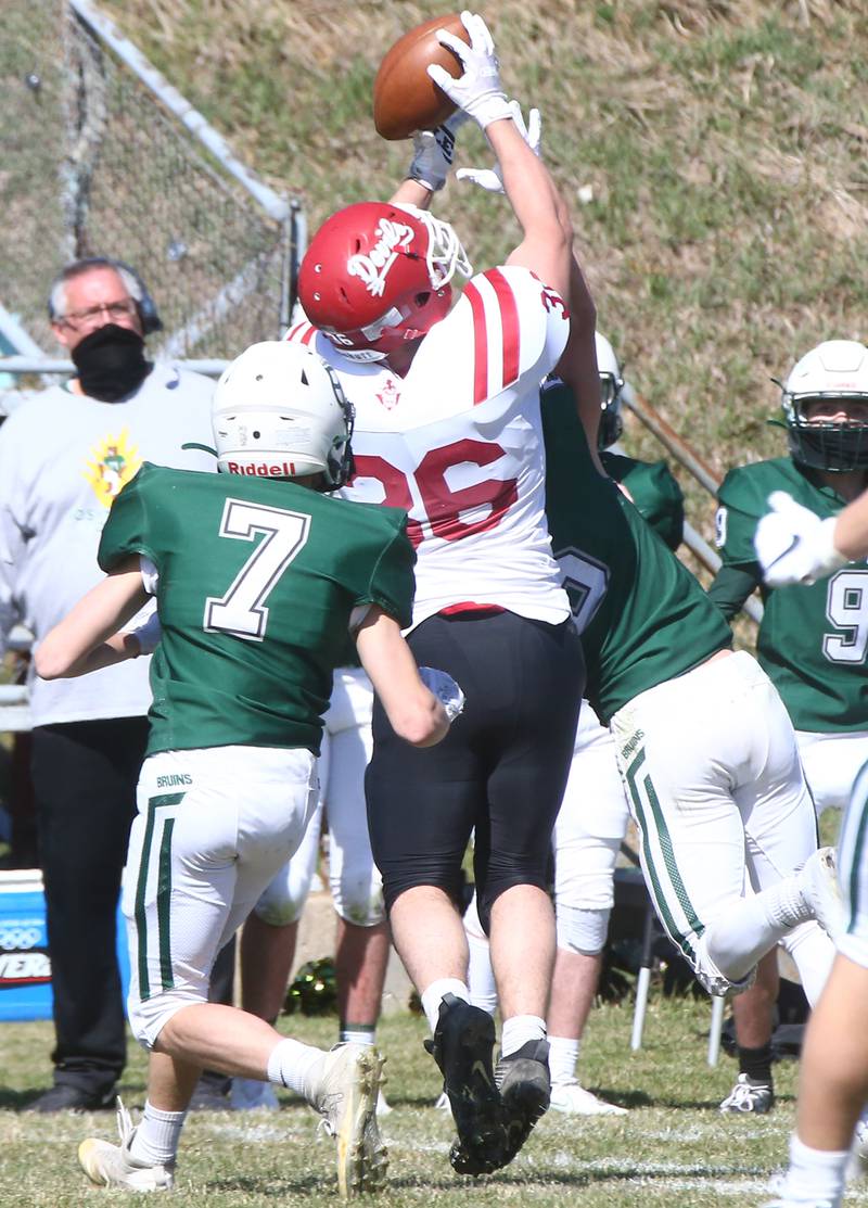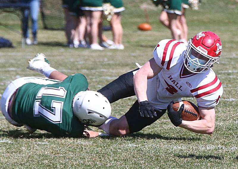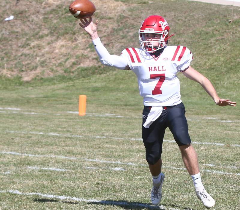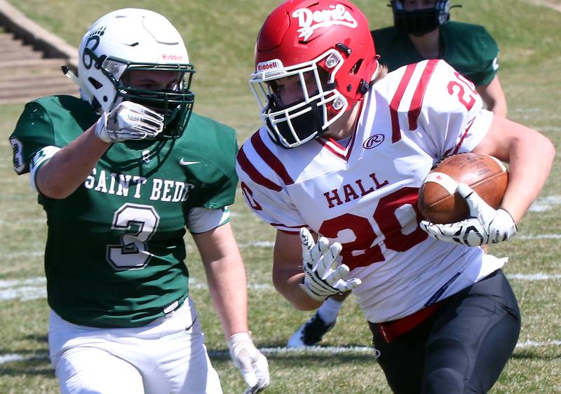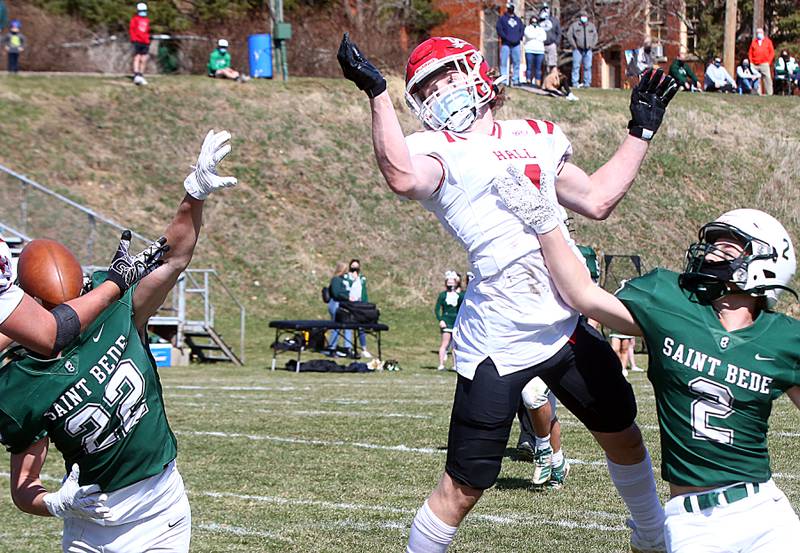 After stopping Hall on another fourth-and-short, the Bruins scored again, this time when Damerell tossed a 20-yard pass to Griffen Heuser on second-and-goal from the 20 that put St. Bede ahead 14-6 at halftime.