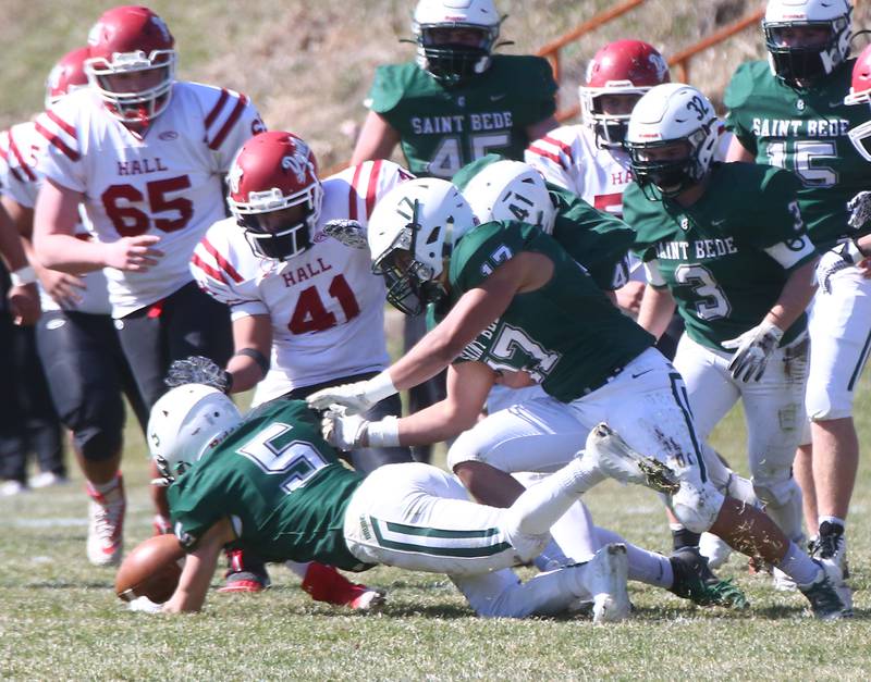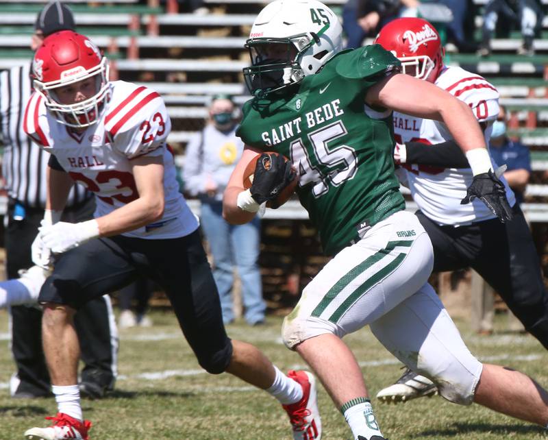 The Bruins converted a Hall fumble recovered by Logan Link into a 2-yard TD run by Damerell in the third quarter, and St. Bede capped the scoring with an 8-yard touchdown run by Ethan Sramek in the fourth.