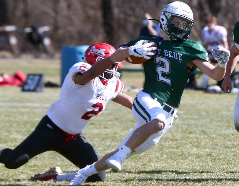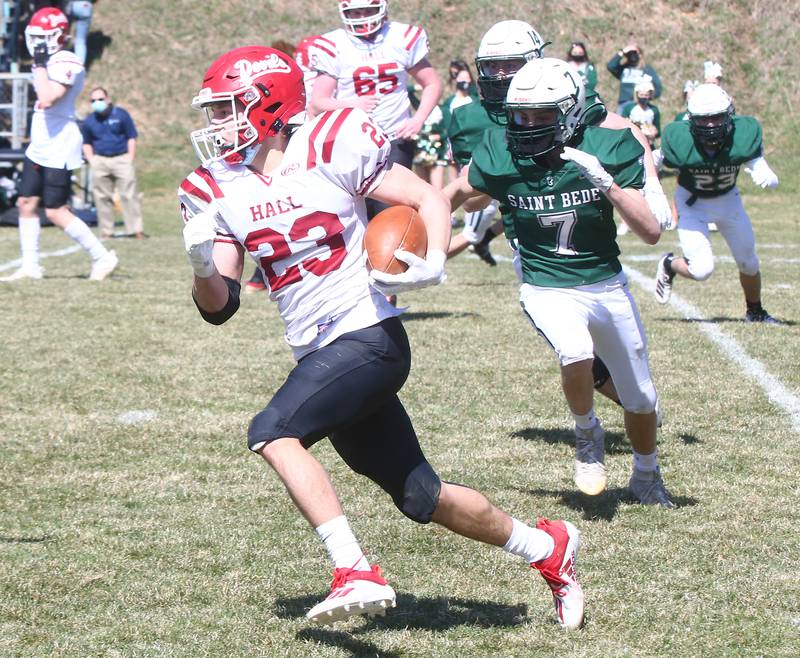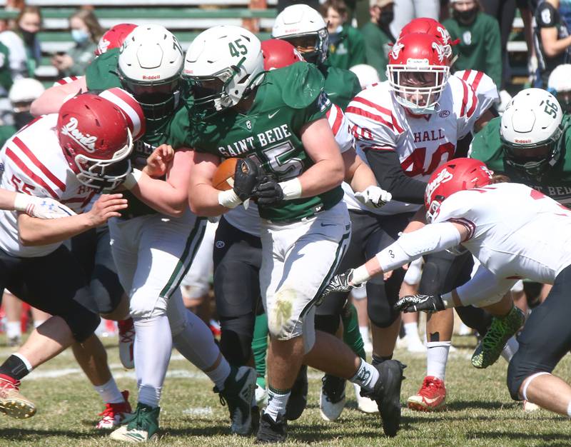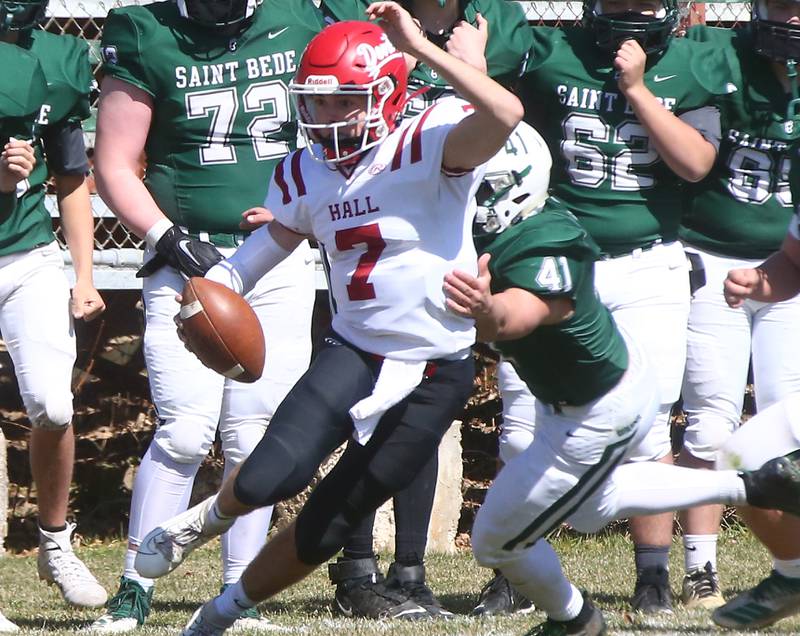 St. Bede stopped Hall quarterback Gabe Lucas on a sneak on fourth-and-1, then marched 73 yards on 11 plays to take the lead for good when Damerell connected with Tyreke Fortney for a 19-yard touchdown pass. The extra point by Nick Pearse gave St. Bede a 7-6 lead early in the second quarter.