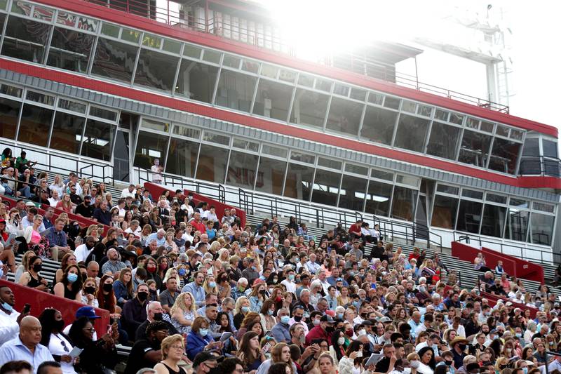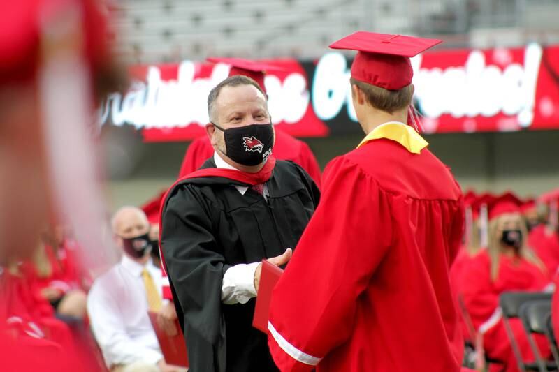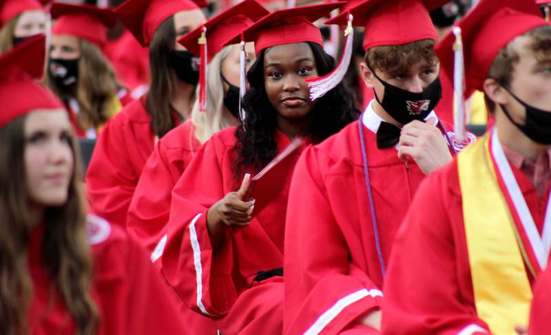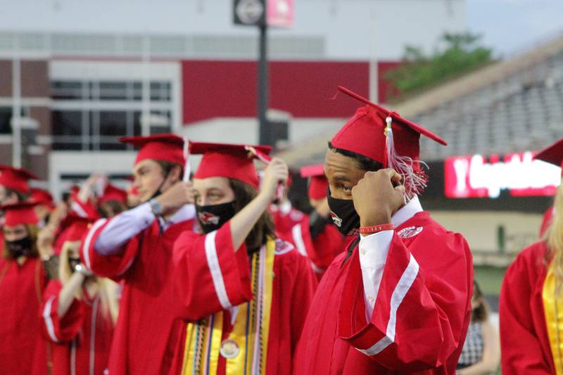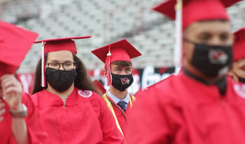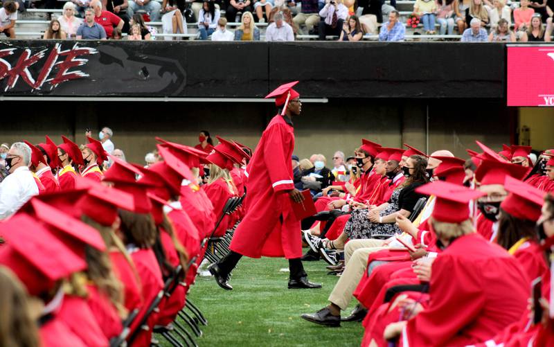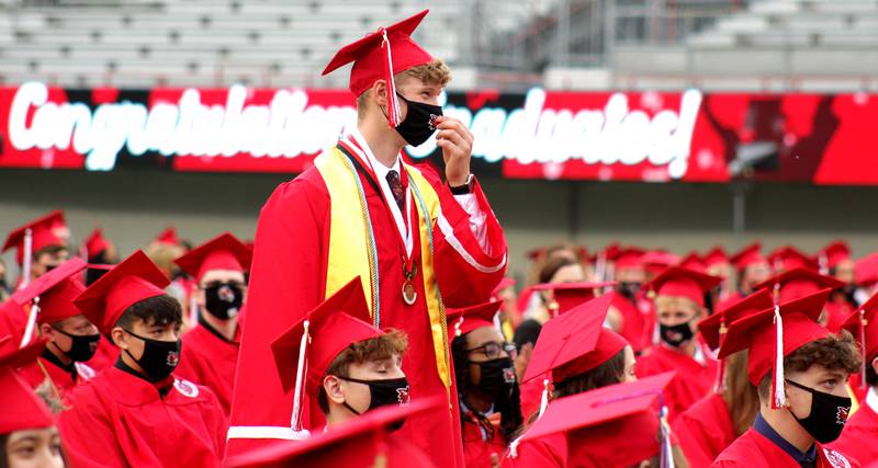 Yorkville High School's Class of 2021 held its commencement exercises at Northern Illinois University's Huskie Stadium, Friday, May 21. (Shea Lazansky)