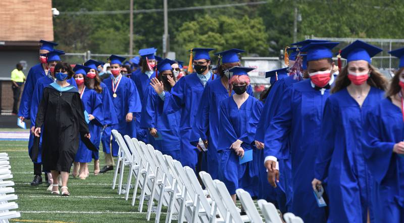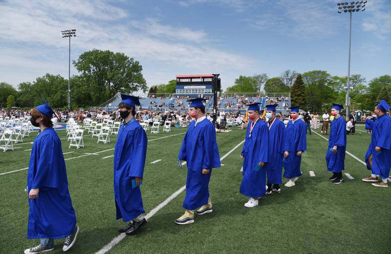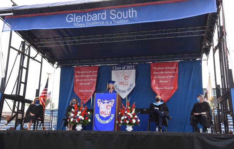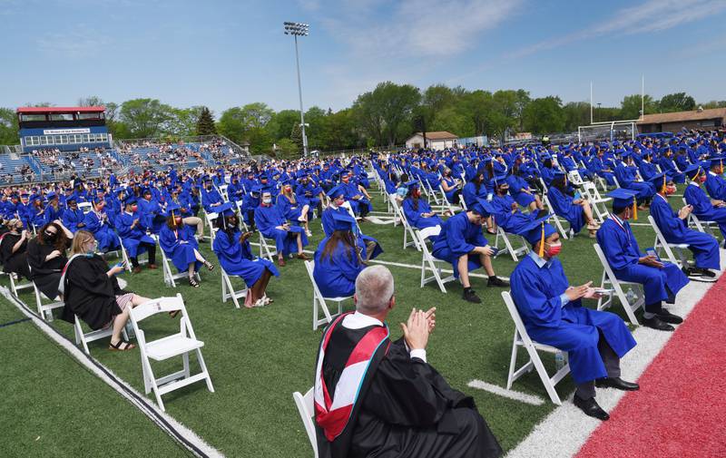 Glenbard South High School held its graduation ceremony on Saturday, May 22, 2021 at the school's football stadium in Glen Ellyn. (Paul Valade/pvalade@dailyherald.com)