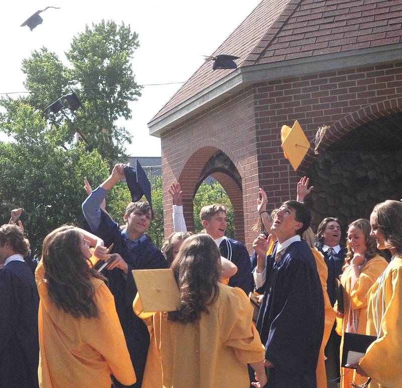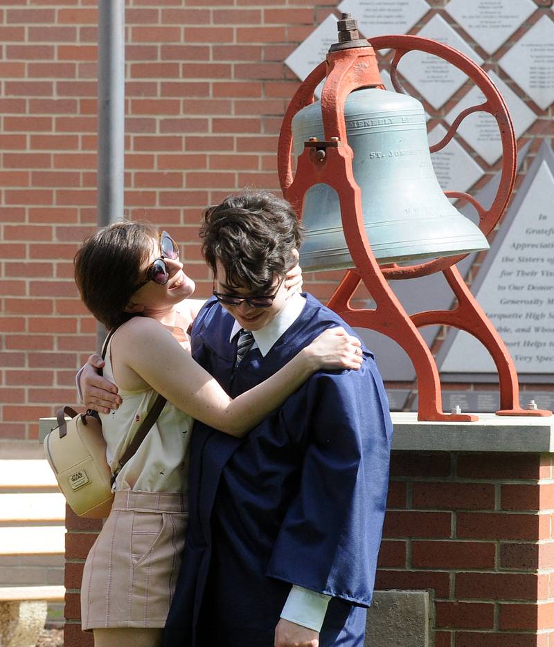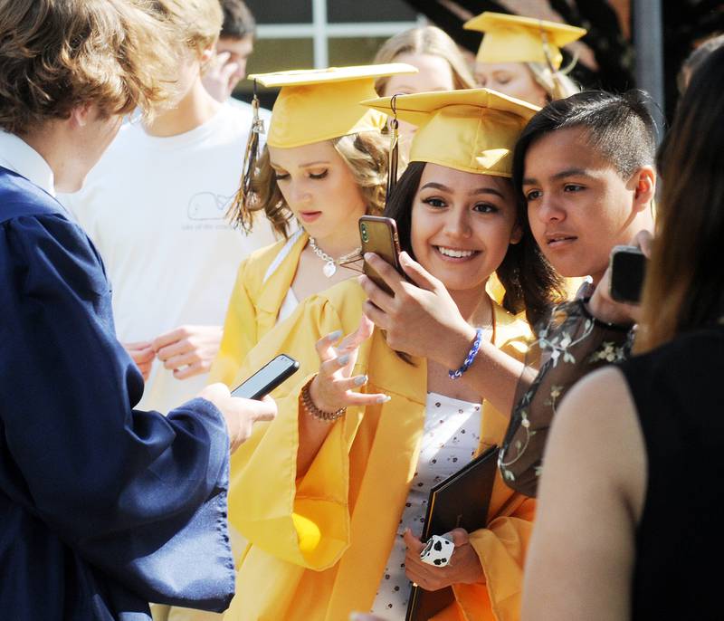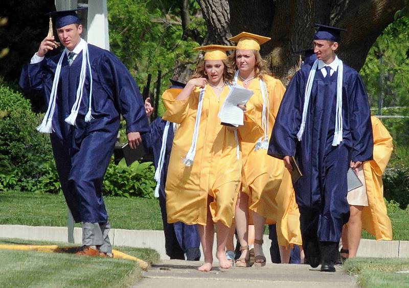 The Marquette Class of 2021 walks back to the high school Sunday, May 30, 2021, after their graduation ceremony at Gould Stadium in Ottawa. (Katy Arnold )