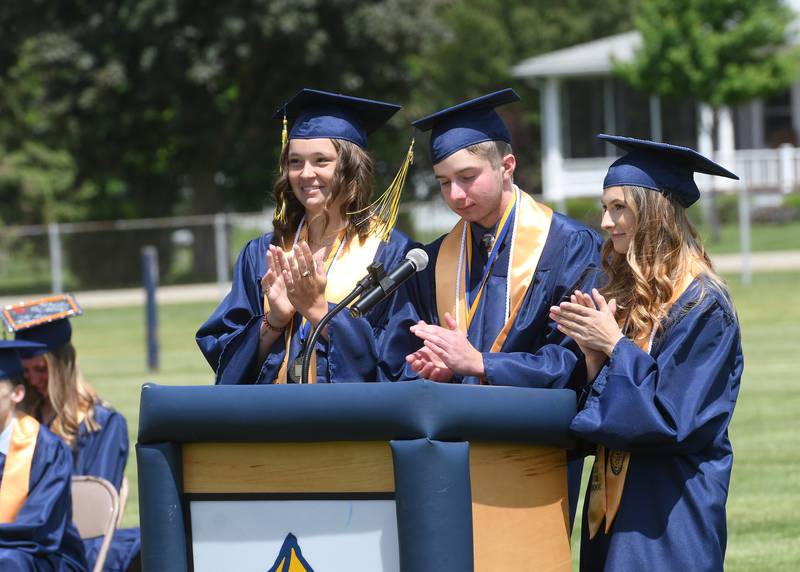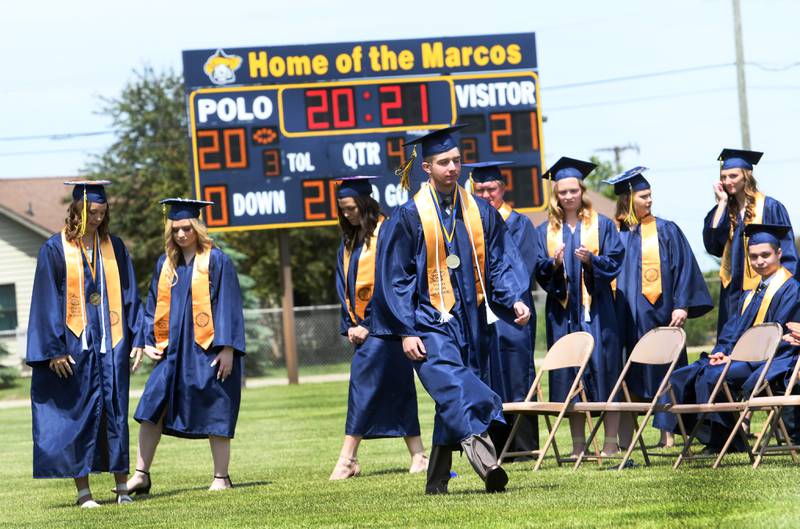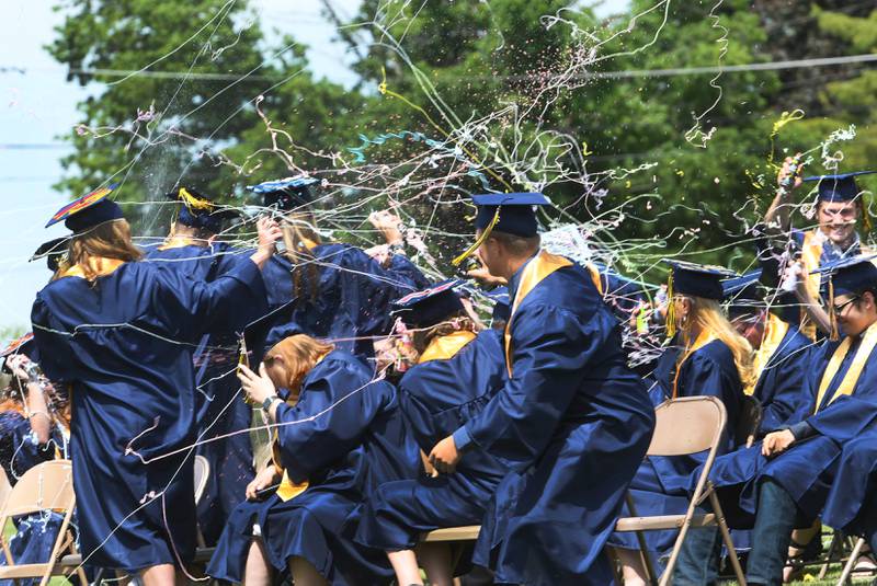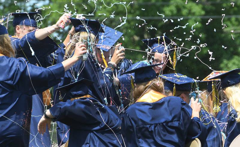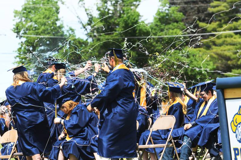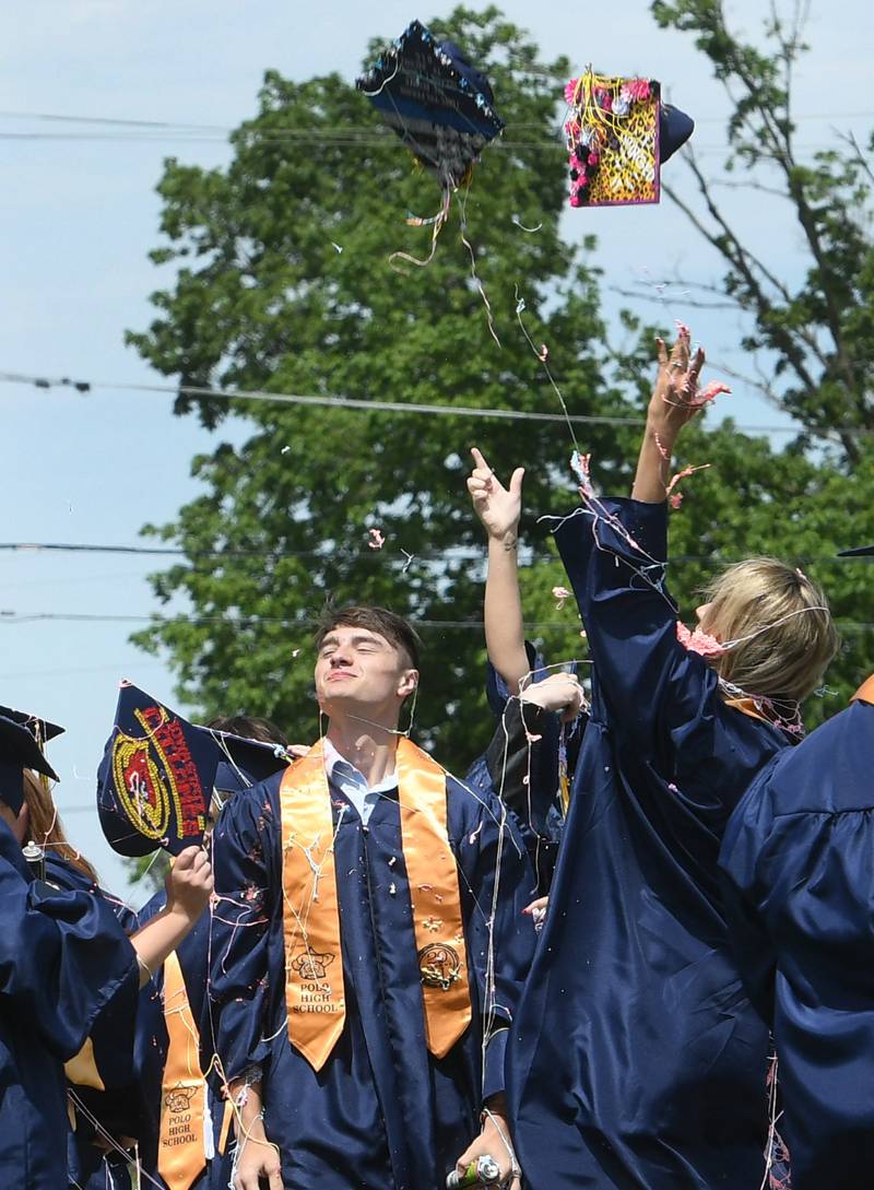Polo High School Class of 2021 graduates ended Commencent on Sunday with tossing their caps into the air after their traditional "Silly String Fight". (Earleen Hinton/Shaw Media)