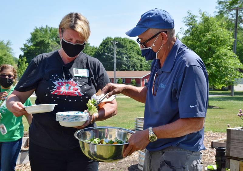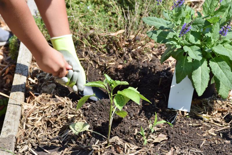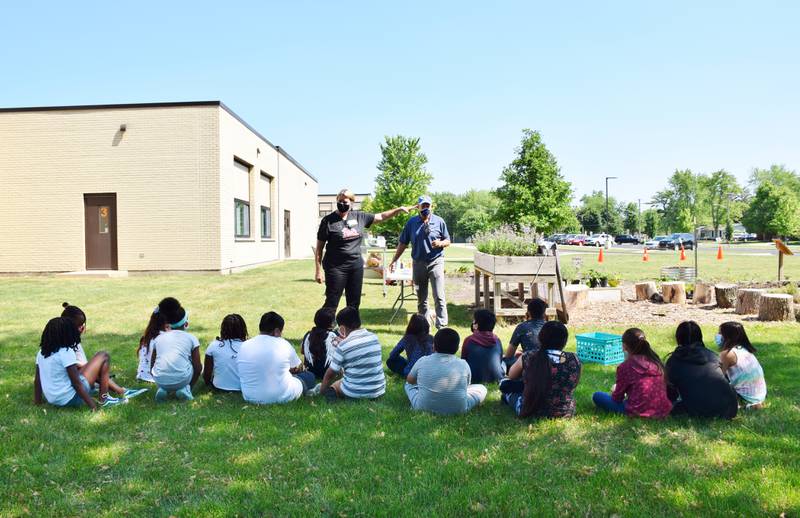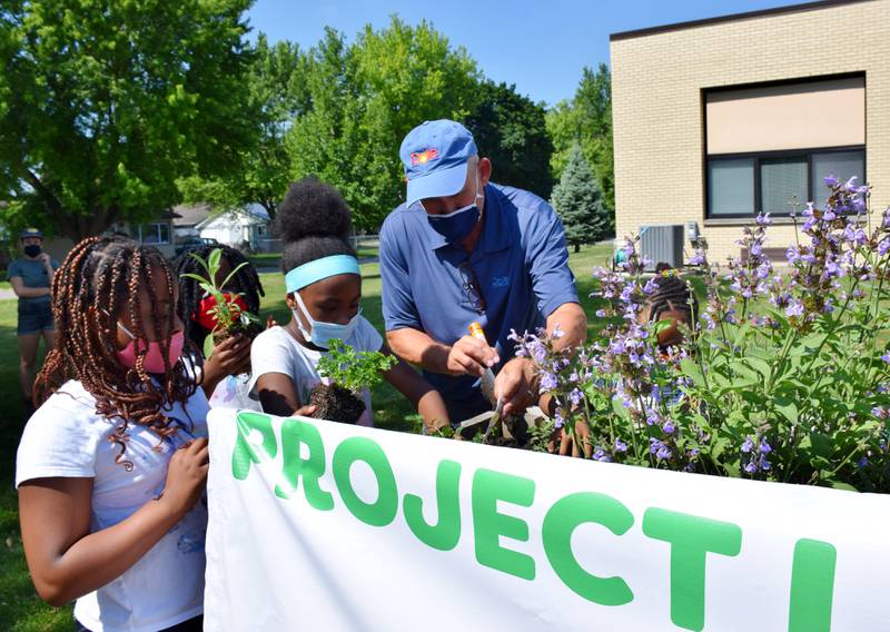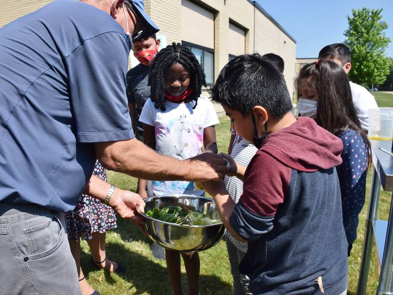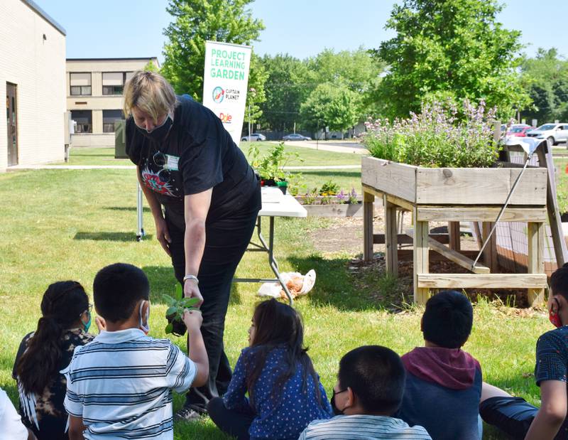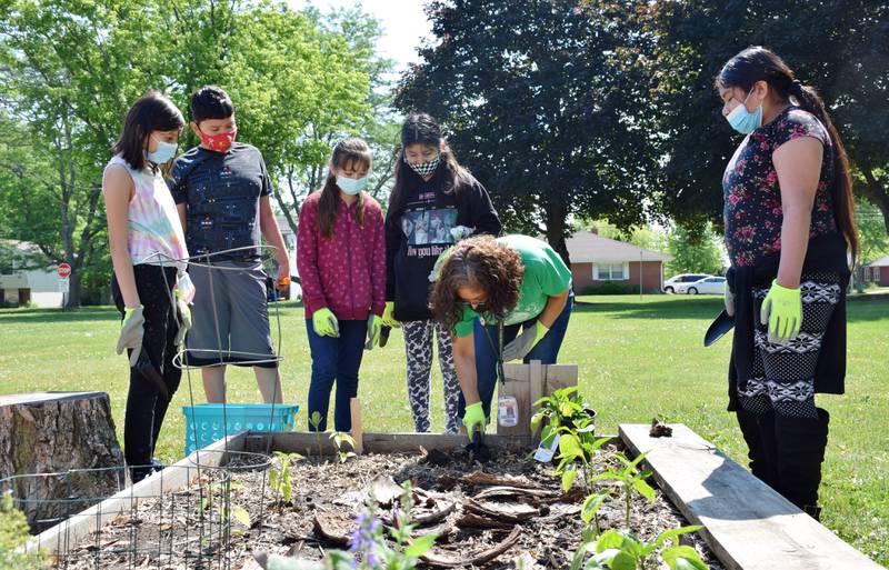 Bilingual Teacher Carina Avalos teaches third and fourth grade students how to garden Thursday morning in the Project Learning Garden at Founders Elementary School in DeKalb. (Katrina Milton)