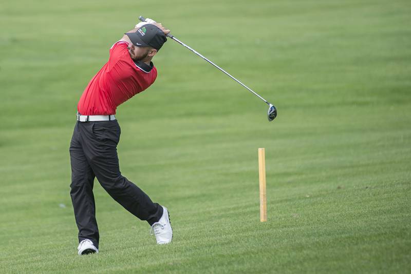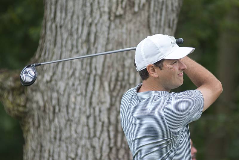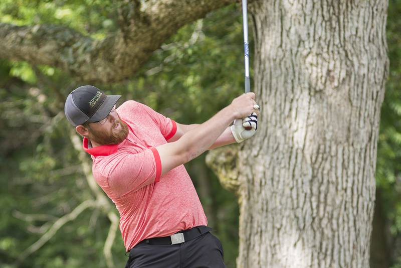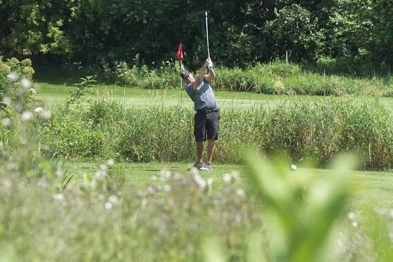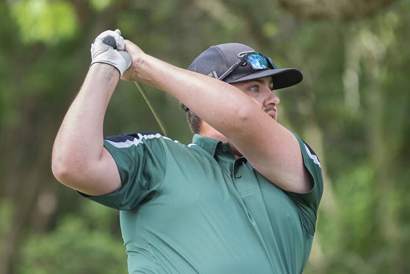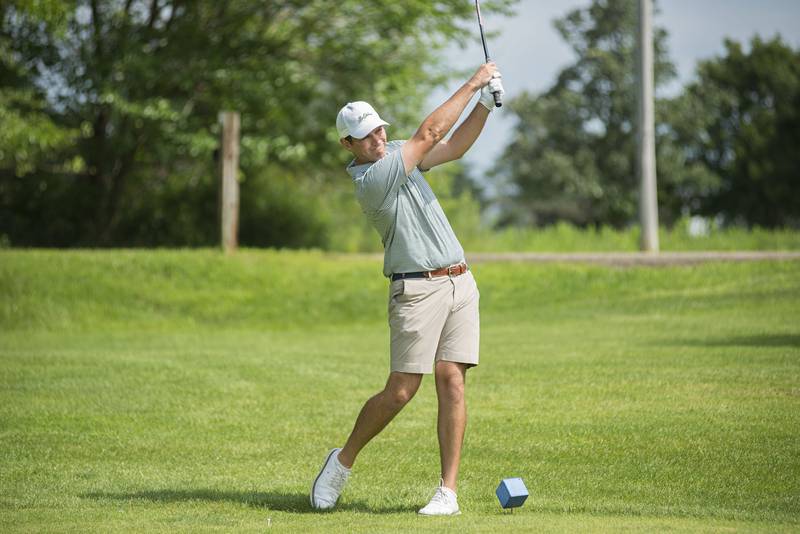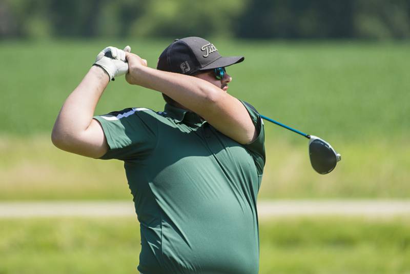 Trevor Sisson watches his drive Sunday, July 18, 2021 in Amboy. (Alex T. Paschal/apaschal@shawmedia.com)