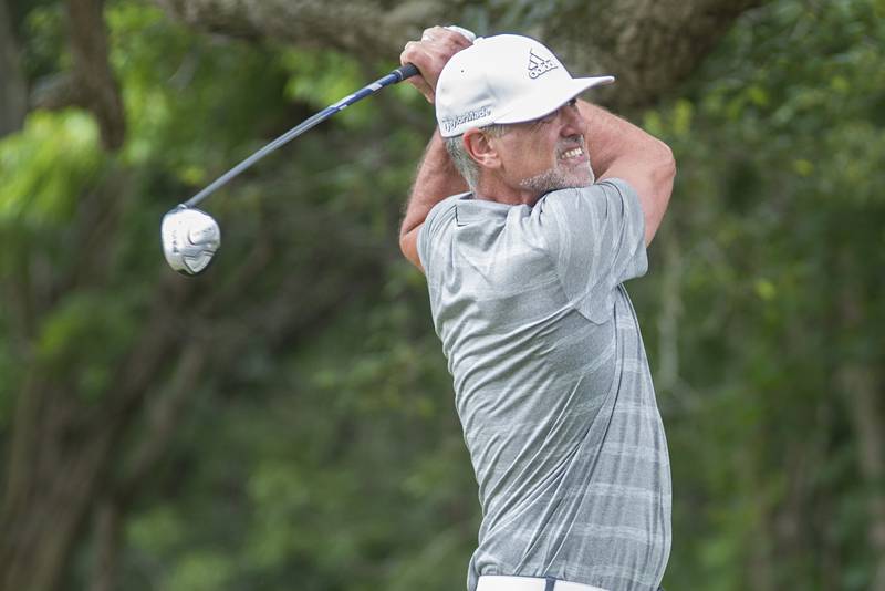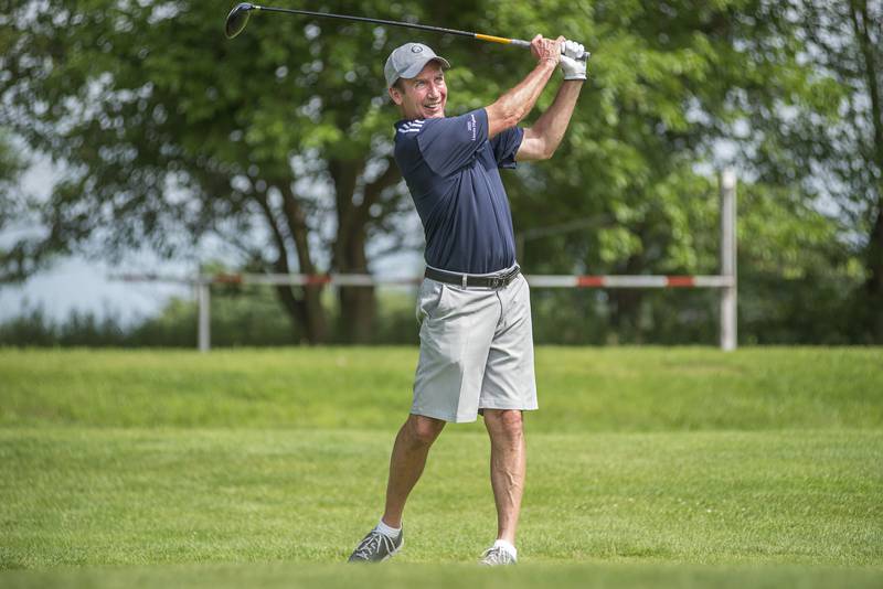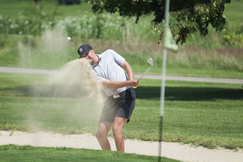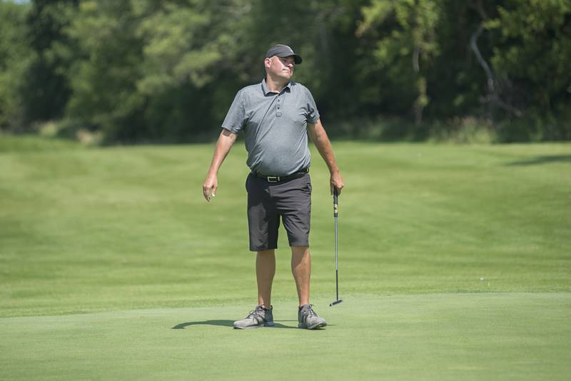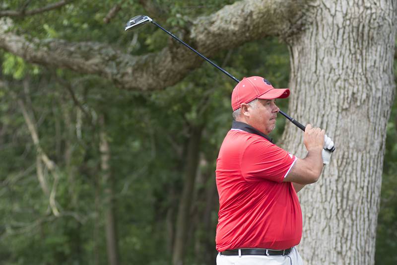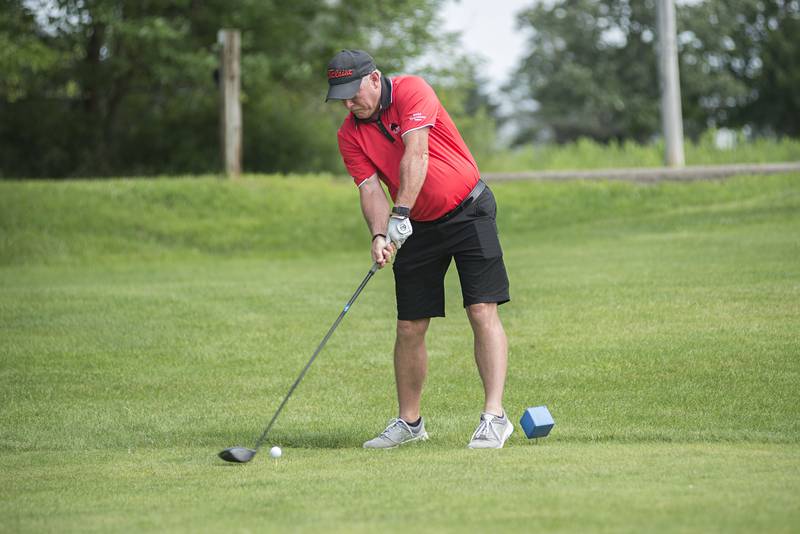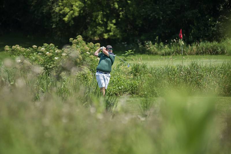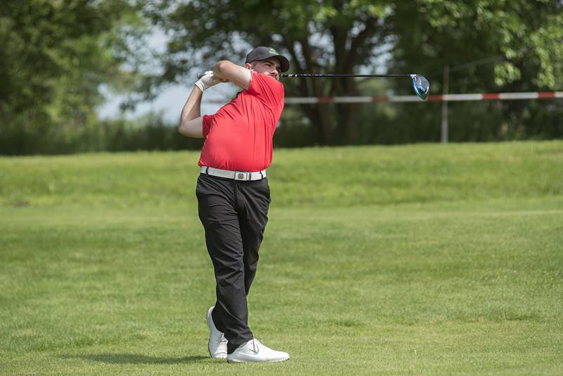 Trevor Sisson watches his drive Sunday, July 18, 2021 in Amboy. (Alex T. Paschal/apaschal@shawmedia.com)