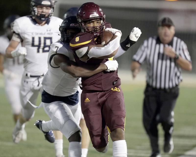 Montini takes the field against IC Catholic Prep during football Friday August 27, 2021 in Lombard. (Brian Hill/bhill@dailyherald.com/Brian Hill/Daily Herald)