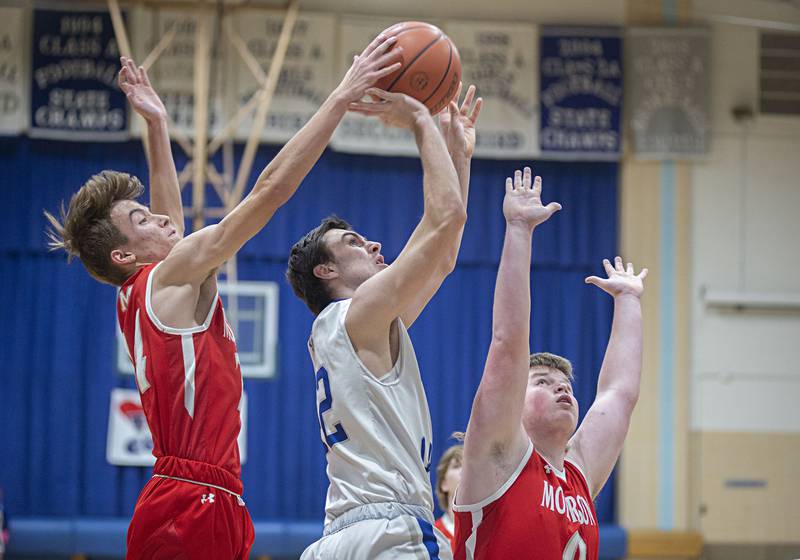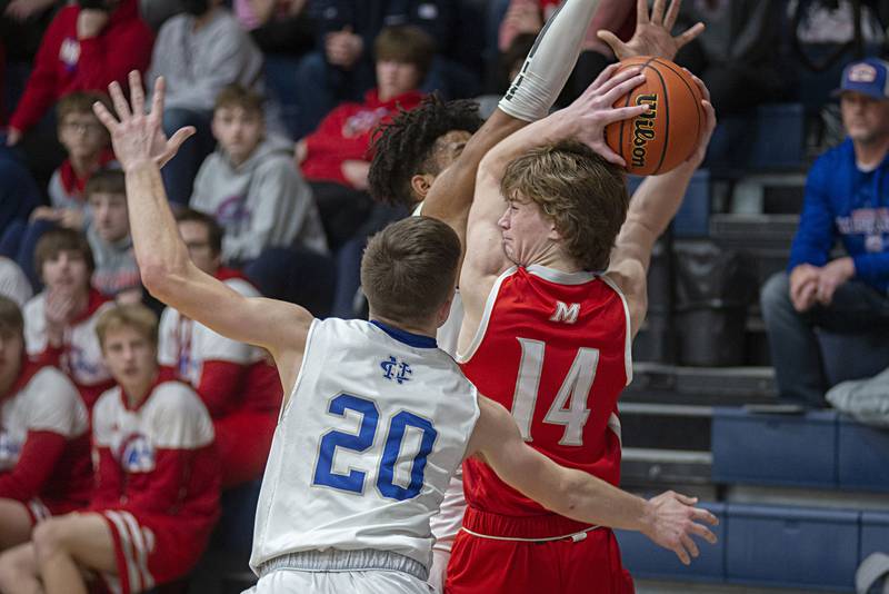 Newman’s Lucas Simpson hauls down a rebound Monday, Feb. 14, 2022 against Morrison. (Alex T. Paschal/apaschal@shawmedia.com/credit)