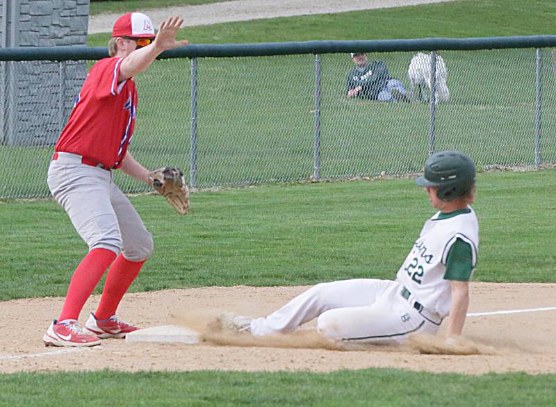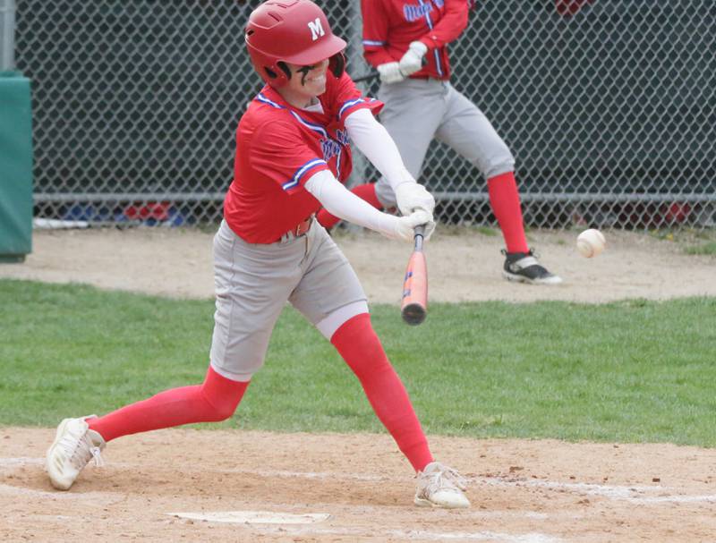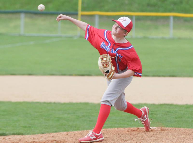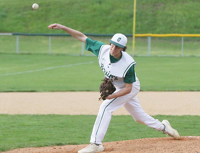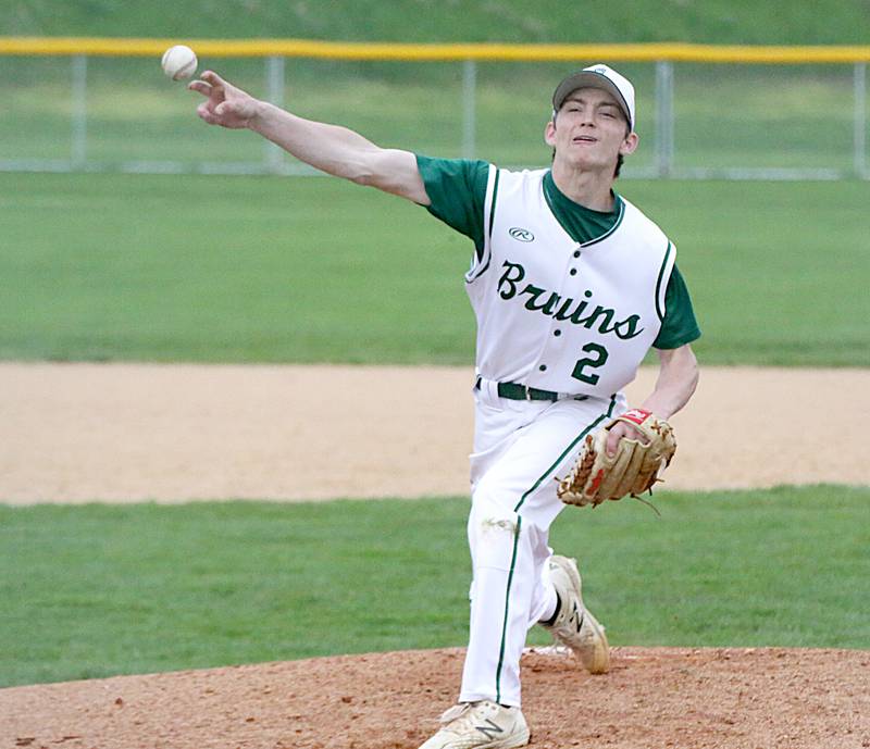 St. Bede's Ryan Brady (2) delivers a pitch to Morrison on Friday, April 29, 2022 at the Academy in Peru. (Scott Anderson)